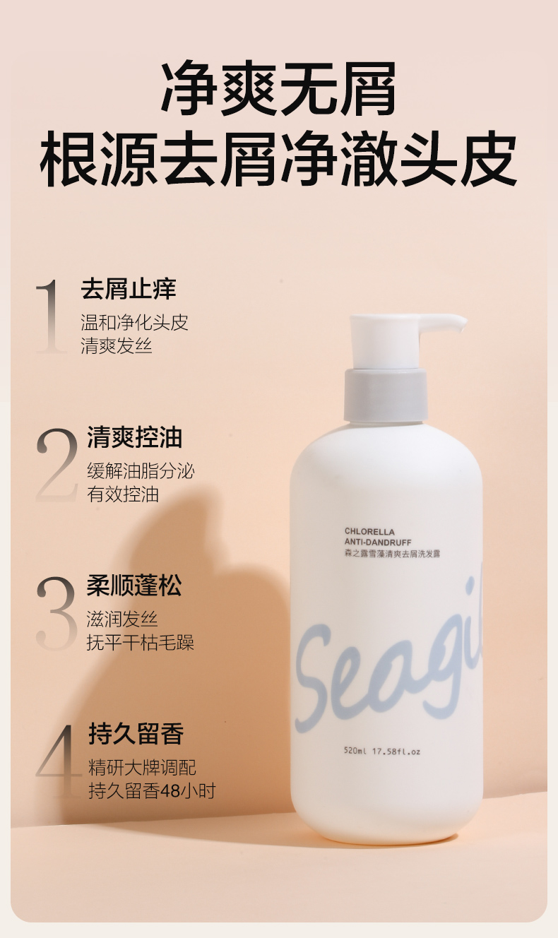 森之露(Seagilon) 洗发露 520ml 雪藻去屑SZL-08 本白色(单位:支)