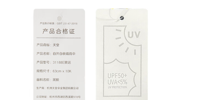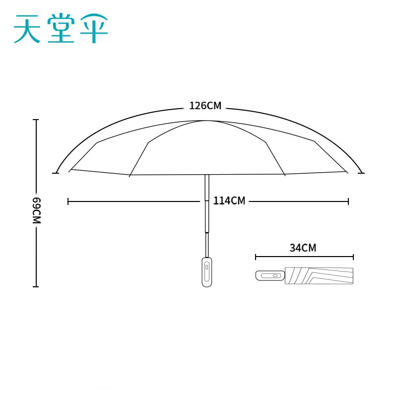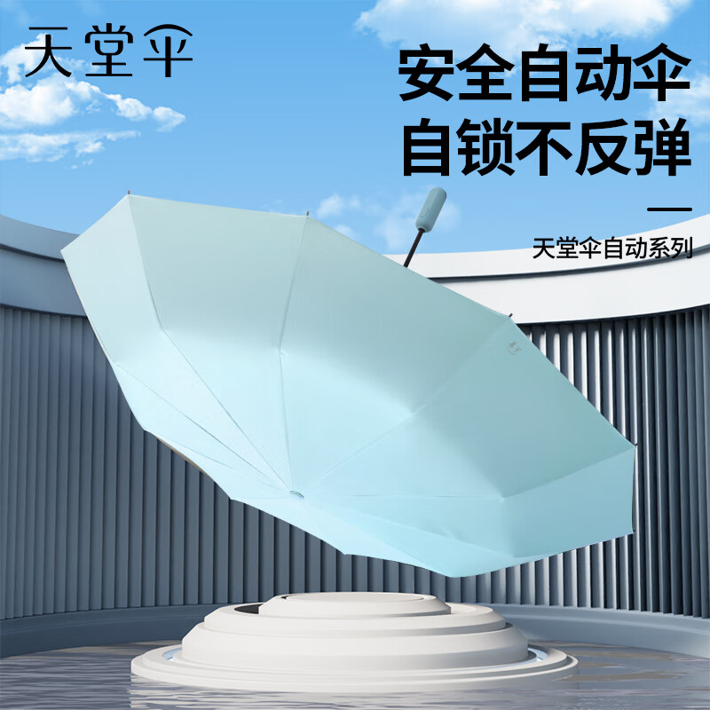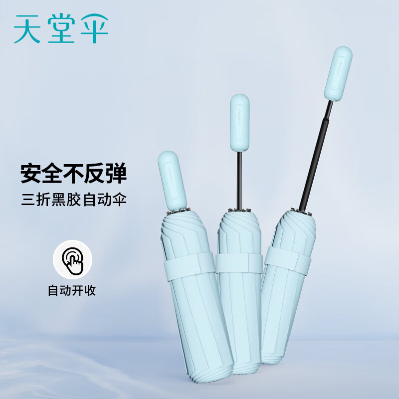 天堂 31188E 三折伞自动 一键开合晴雨两用伞 净空蓝(单位:把)
