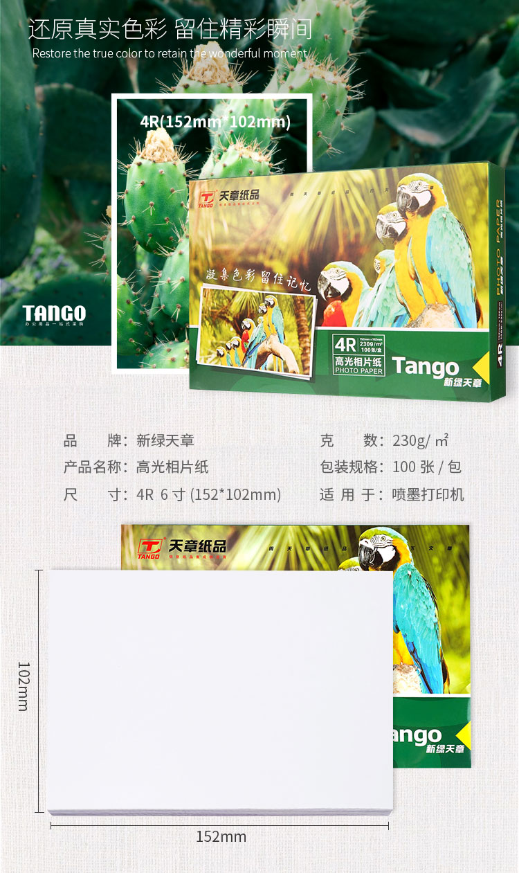 新绿天章 P3621 4R 230G 100张/包 高光相片纸 白色(单位:包 )