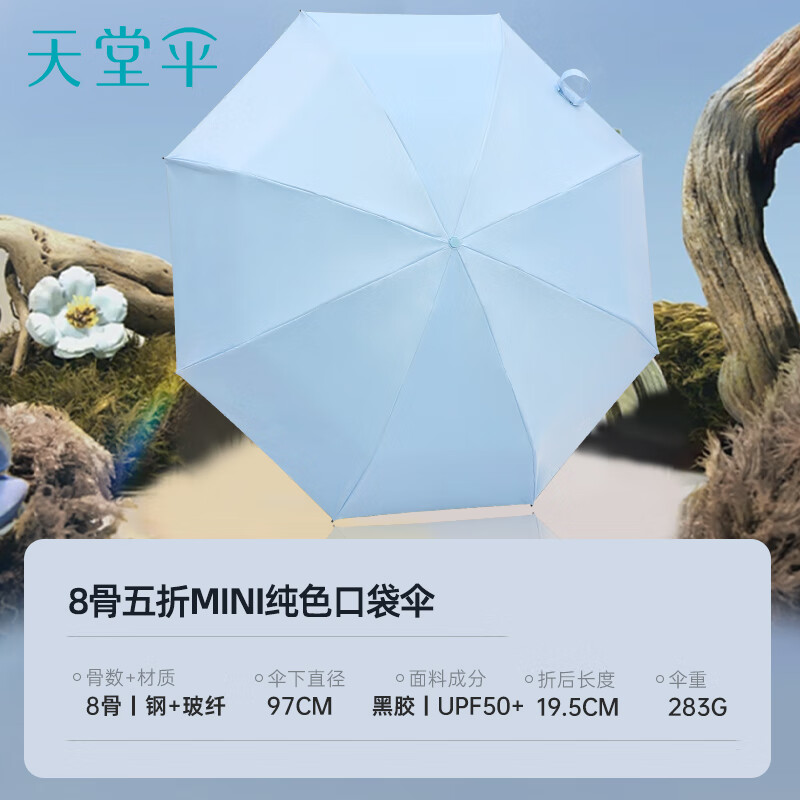天堂 50766ET 五折伞加大 口袋胶囊伞 净空蓝(单位:把)