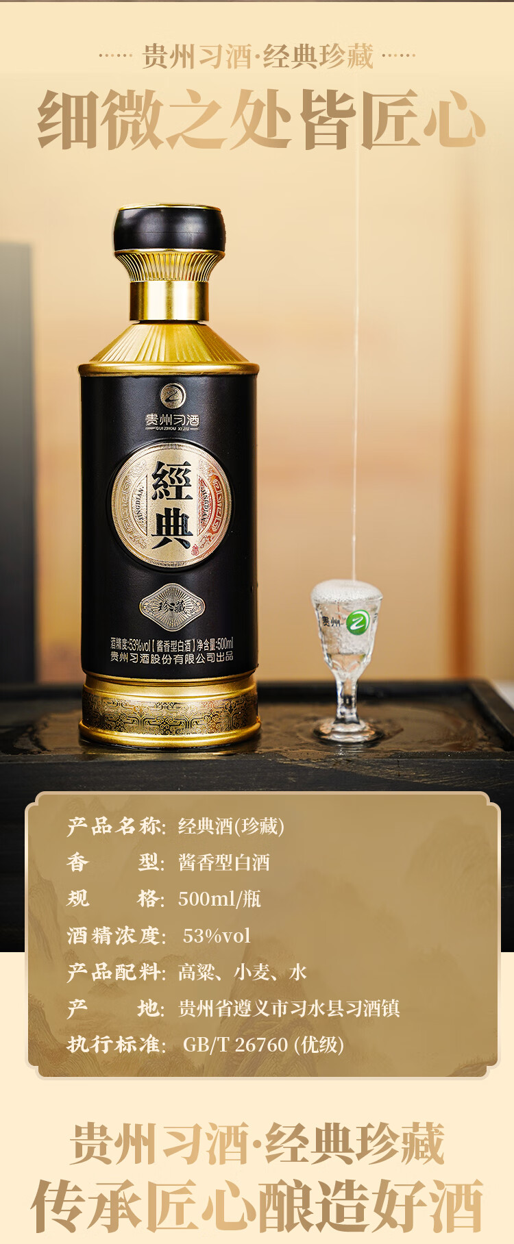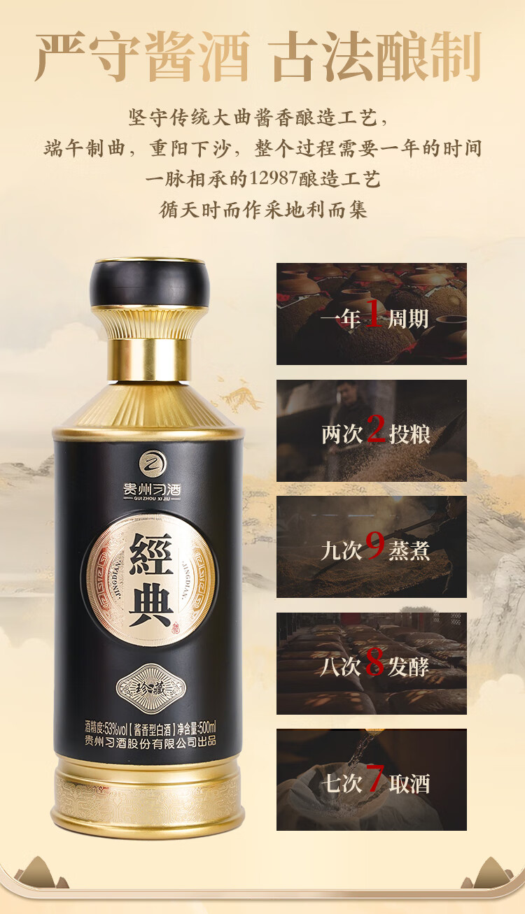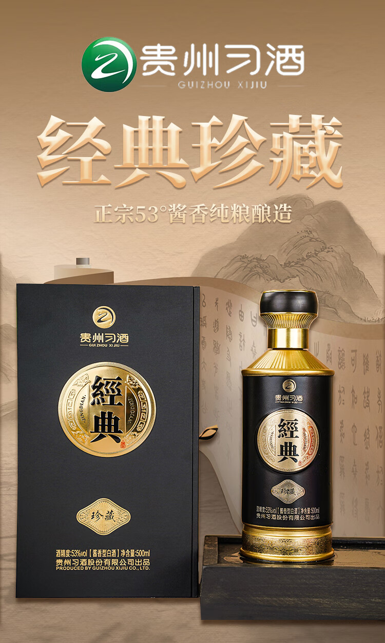 习酒 经典珍藏 500ml*2瓶礼盒配手提袋 53度酱香型白酒 黑金色(单位:盒)