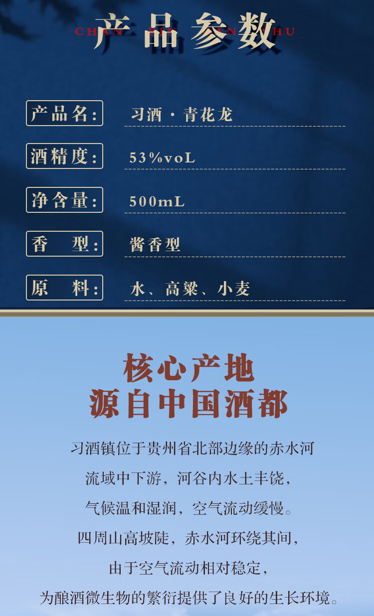 习酒 青花龙 500ml*1瓶礼盒装 53度酱香型高端白酒 混色(单位:盒)