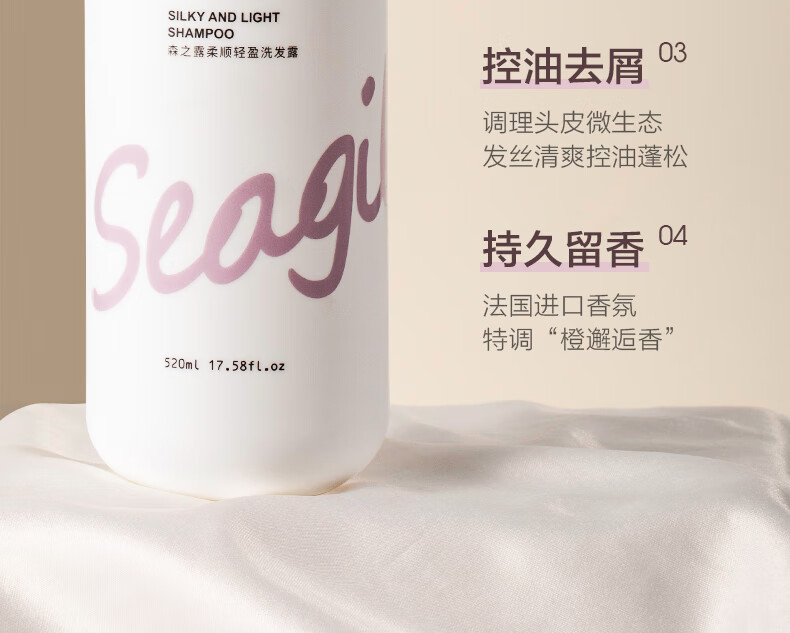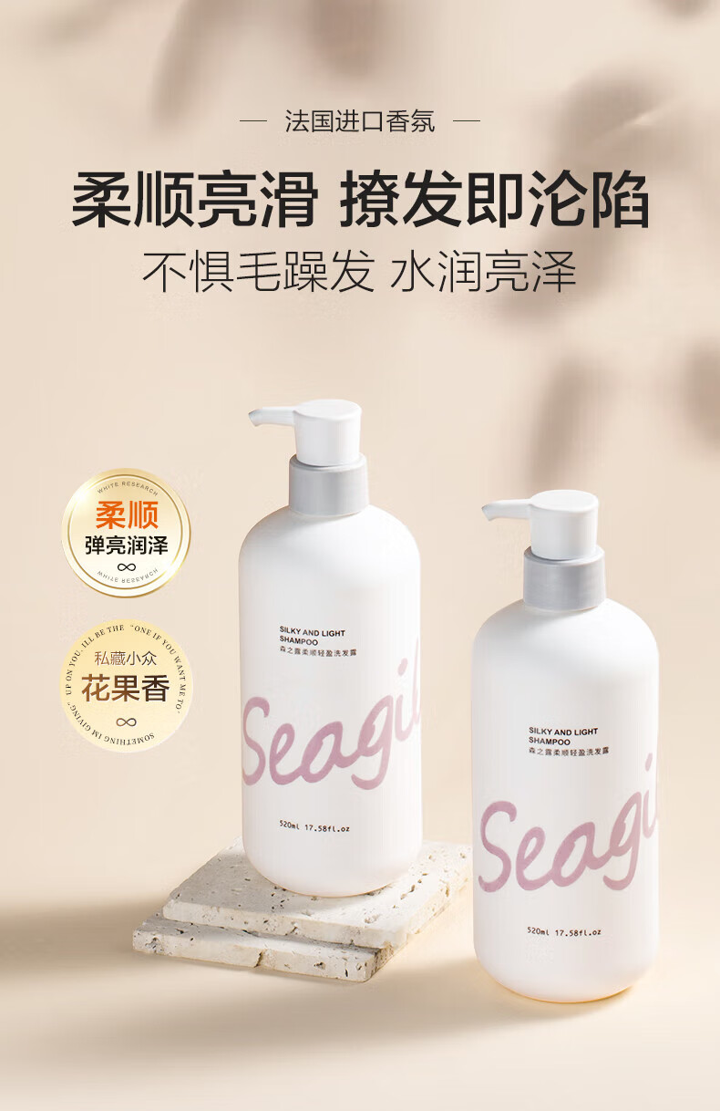 森之露(Seagilon) 洗发水 520ml 柔顺轻盈洗发露 钢琴白(单位:瓶)