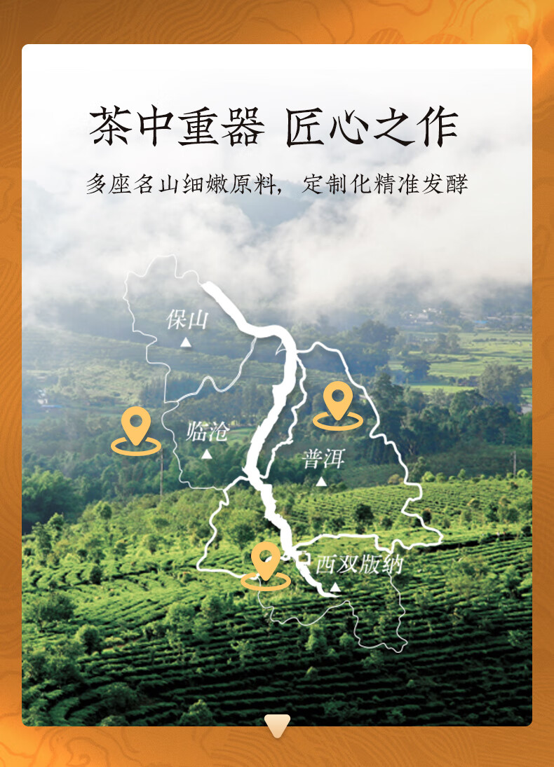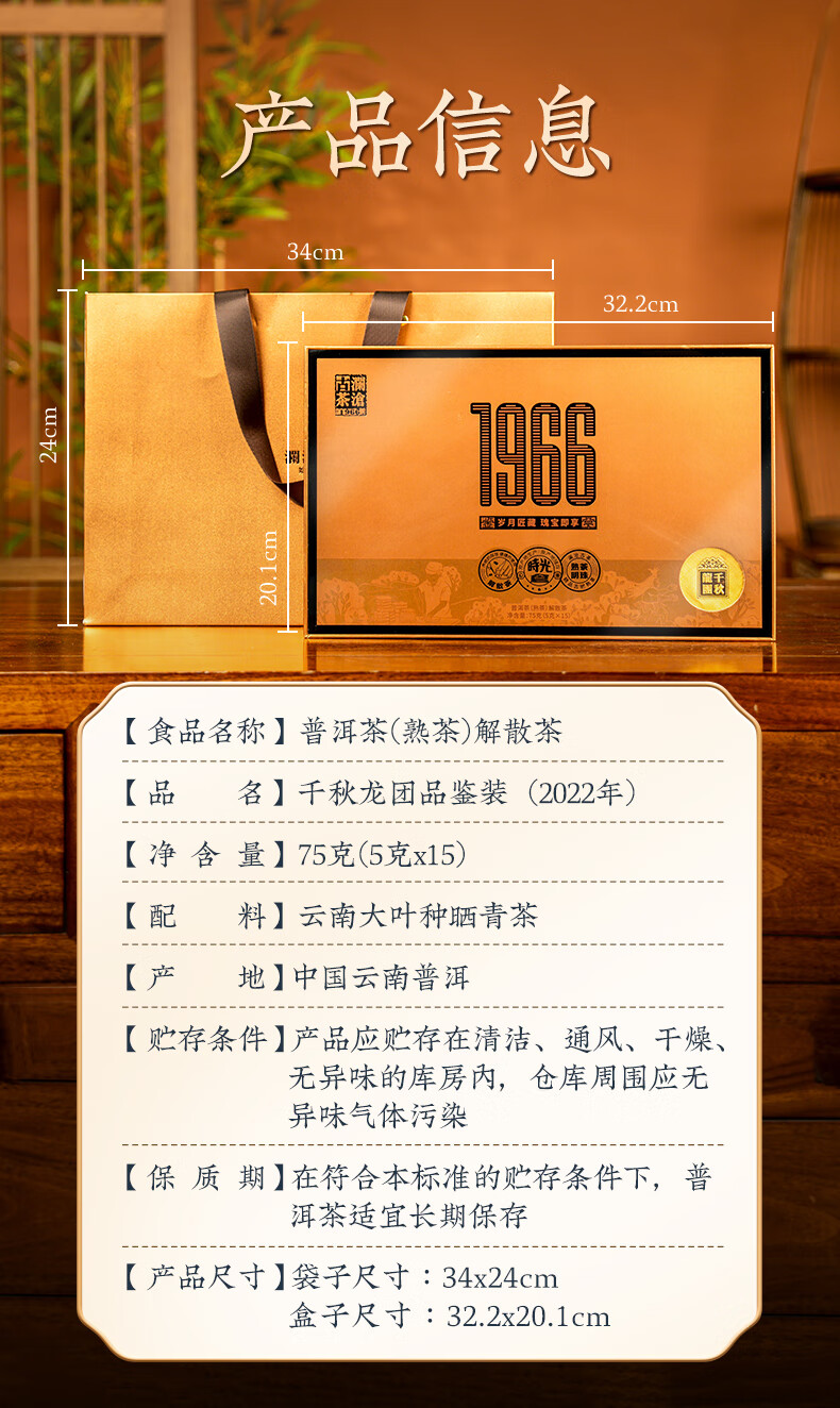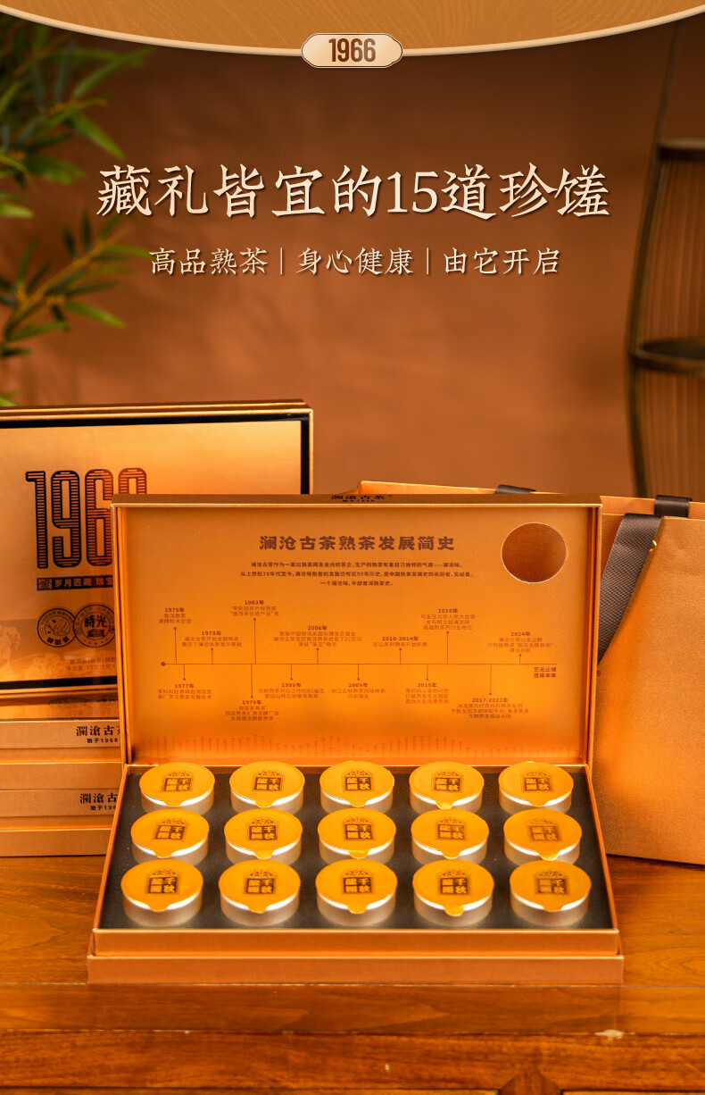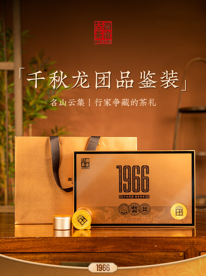 澜沧古茶 千秋龙团鉴赏装 75g(5g*15小罐) 高品熟茶小罐礼盒 香槟黄(单位:盒)