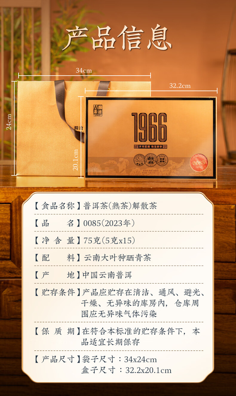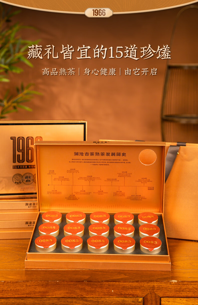 澜沧古茶 0085景迈品鉴装2023年 75g(5g*15罐) 普洱茶熟茶解散茶小罐 香槟黄(单位:盒)