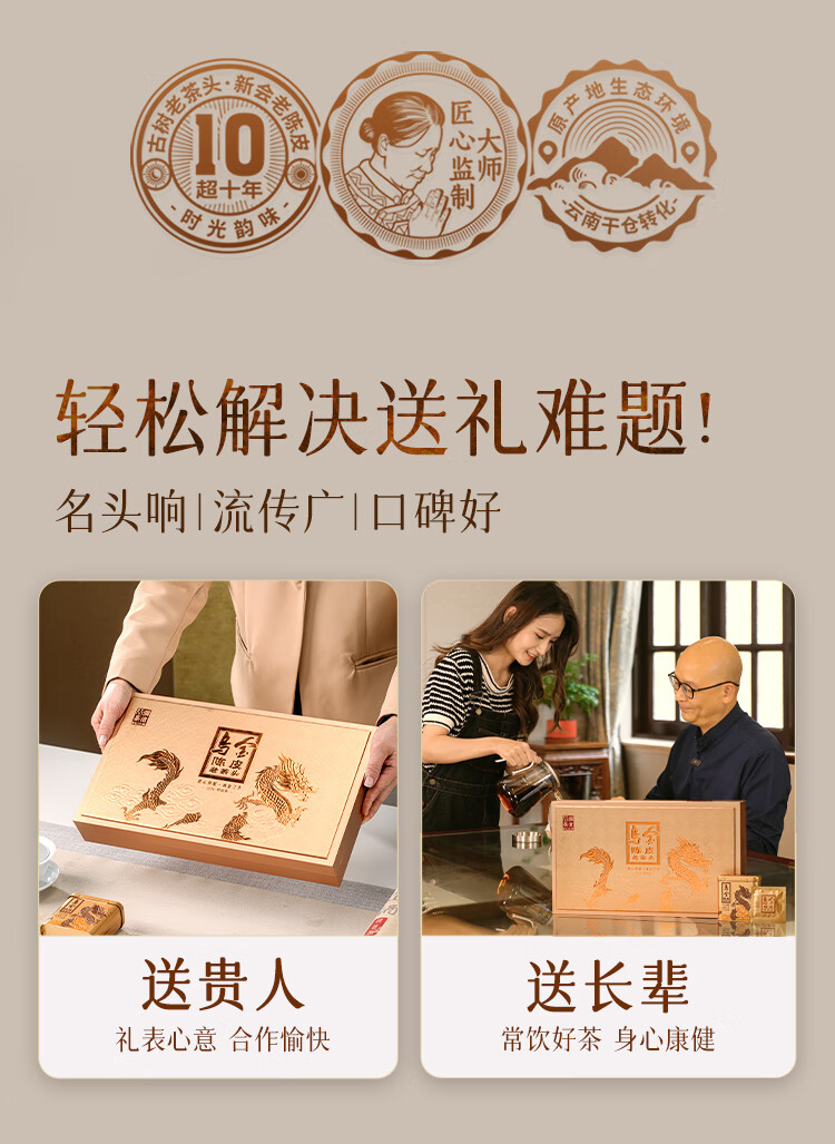 澜沧古茶 乌金陈皮老茶头2024年金装礼盒装 160g(4g*8片*5小盒) 云南普洱熟茶 香槟黄(单位:盒)