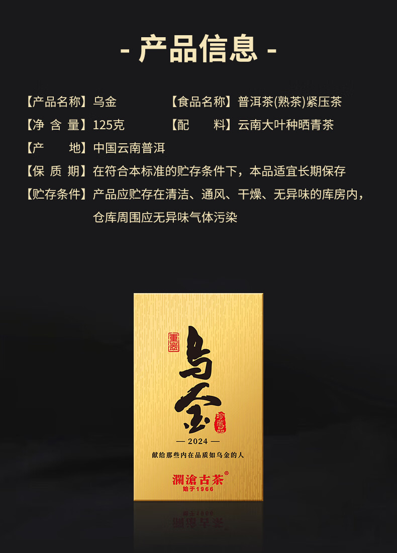 澜沧古茶 2024年第五代乌金 125g 云南普通熟茶 黄色(单位:盒)