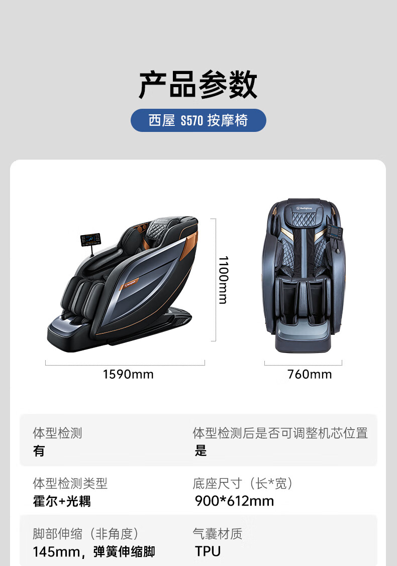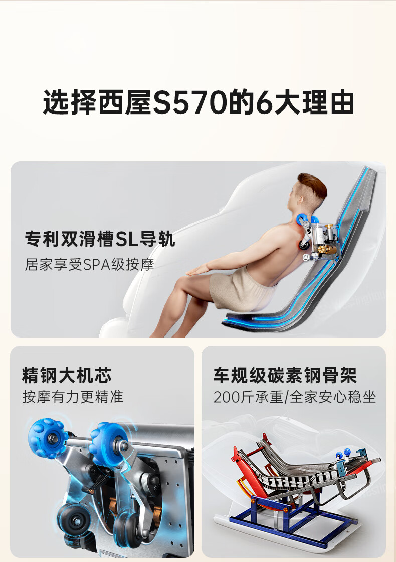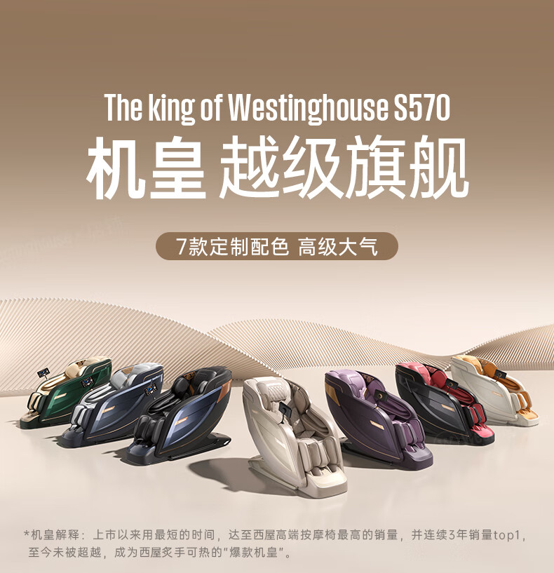 西屋(Westinghouse) S570 气囊按压 双滑槽导轨 家用豪华按摩椅 幻影灰(单位:台)