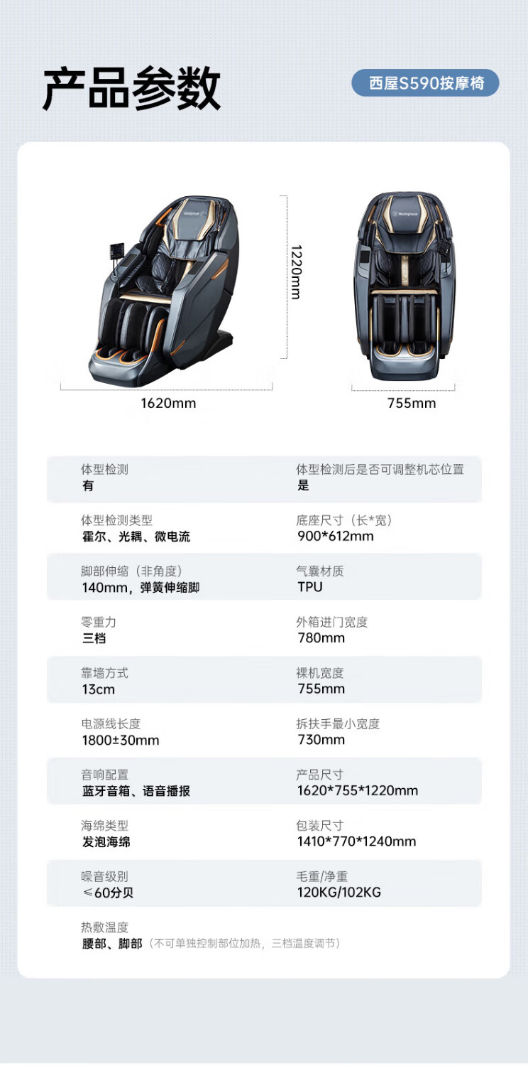 西屋(Westinghouse) S590 中医养生推拿 全自动沙发 豪华家用按摩椅 可可奶白(单位:台)