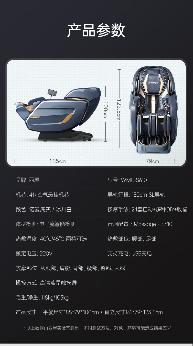 西屋(Westinghouse) WMC-S610 腰部热敷 上班族适用 按摩椅 诺曼底灰(单位:台)