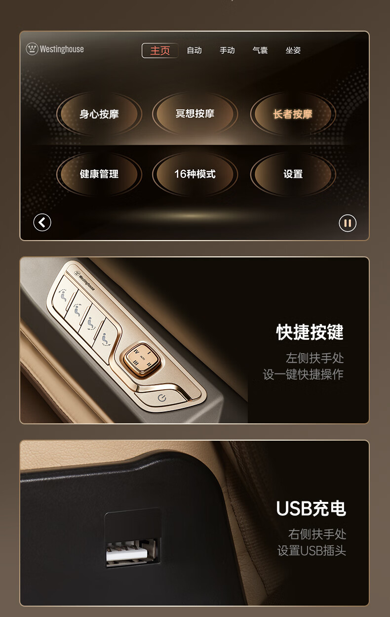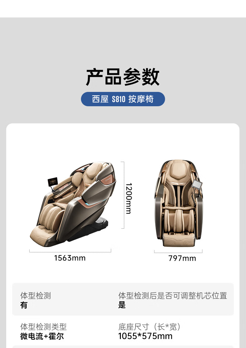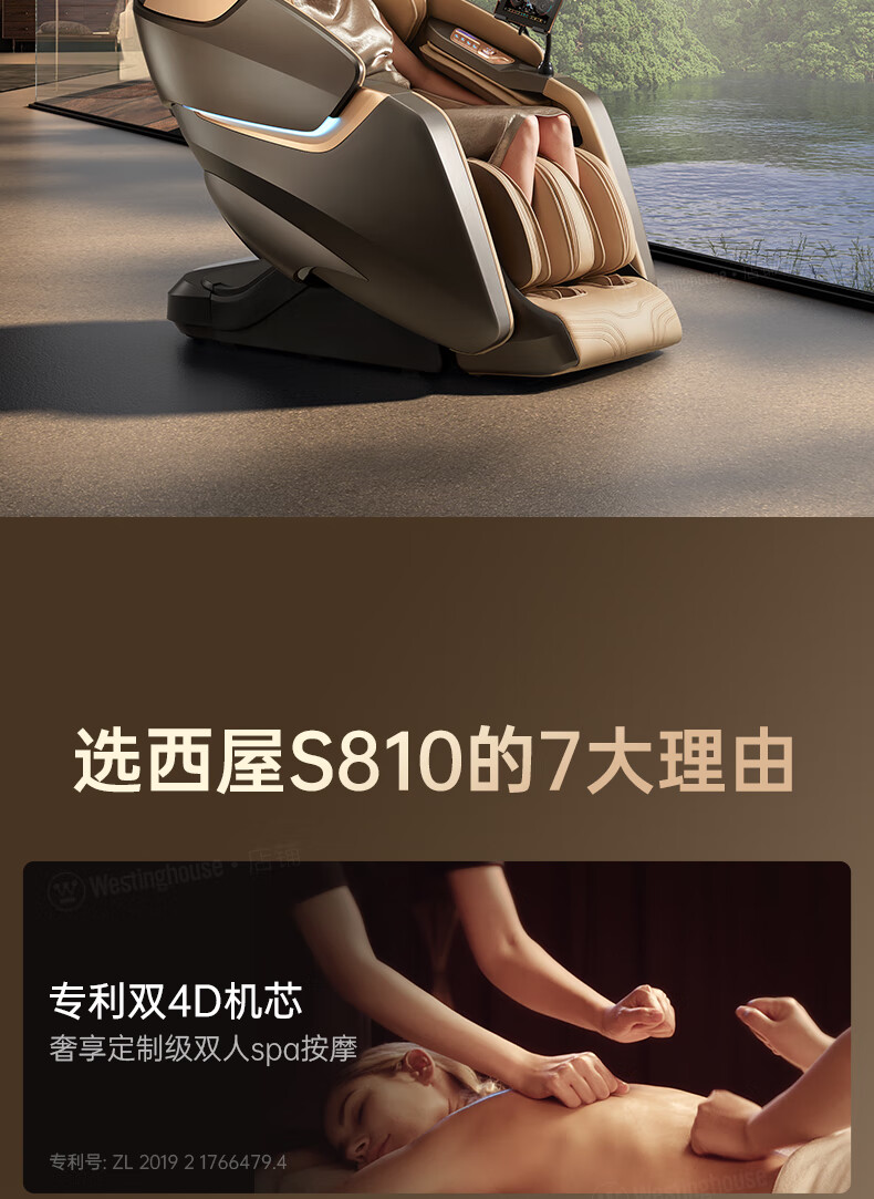 西屋(Westinghouse) S810 全身自动零重力 太空舱 按摩沙发 弥勒棕(单位:台)