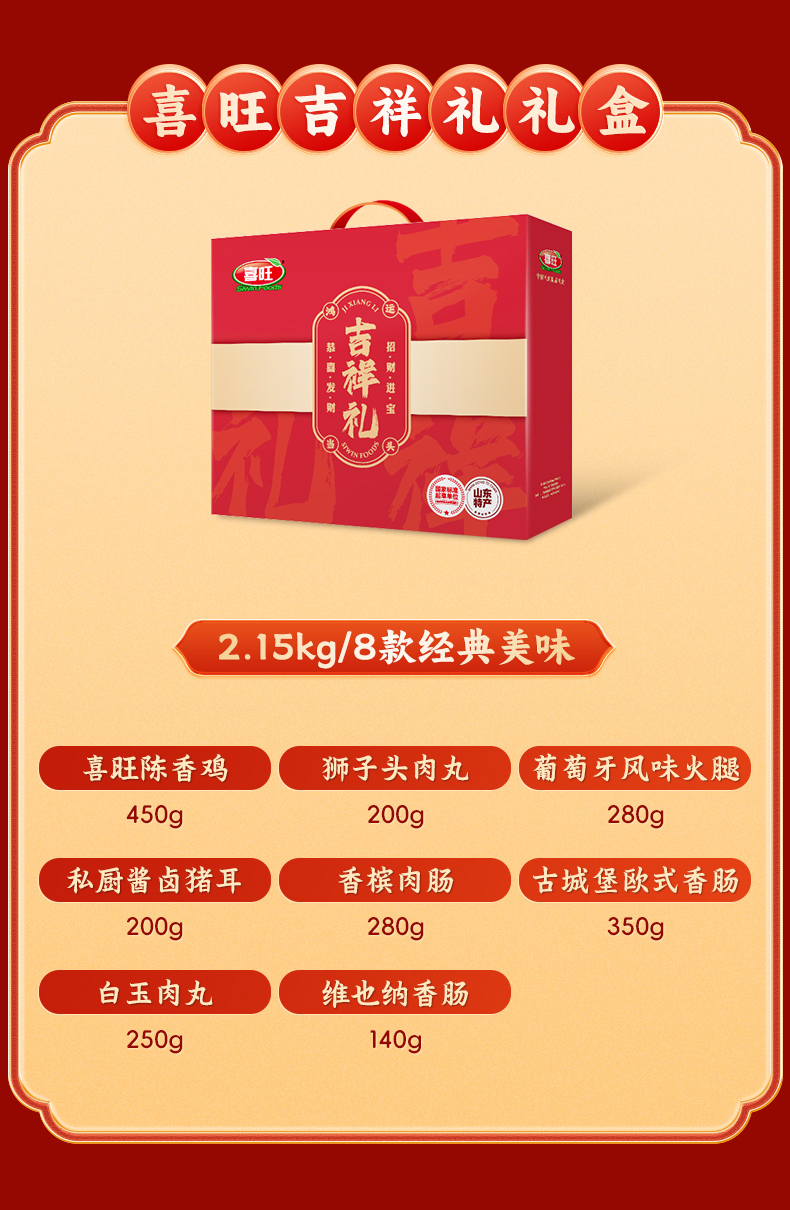 喜旺(Siwin Foods) 熟食卤味礼盒中秋礼包 吉祥礼肉食 2150g礼盒装 混色(单位:盒)