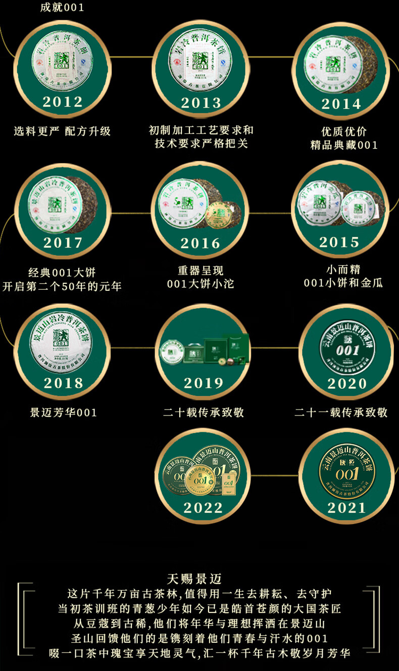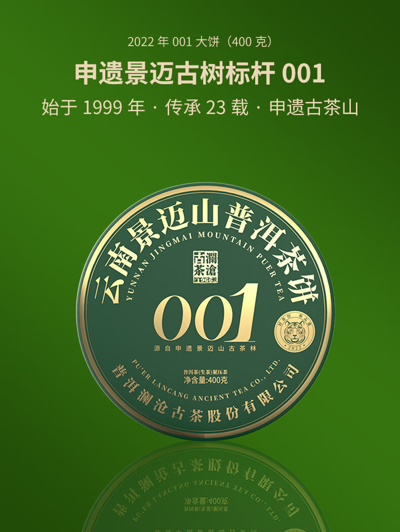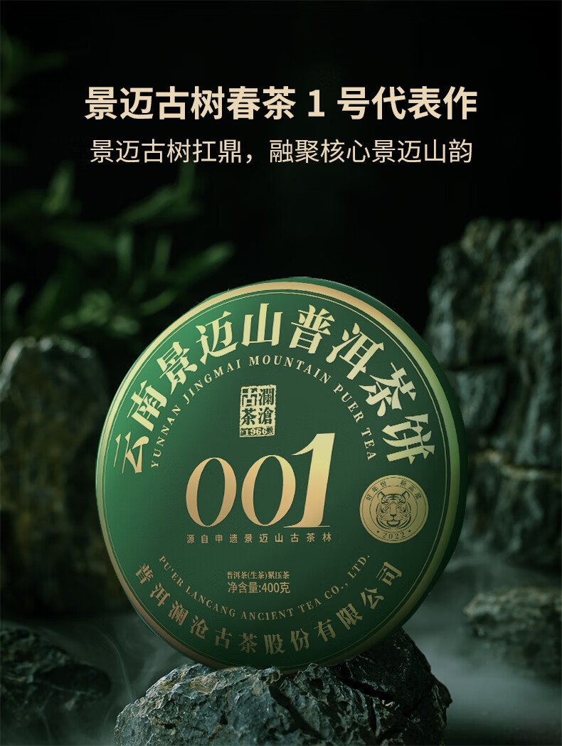 澜沧古茶 2022年饼茶001景迈 400g 云南普洱生茶紧压茶 深绿色(单位:饼)