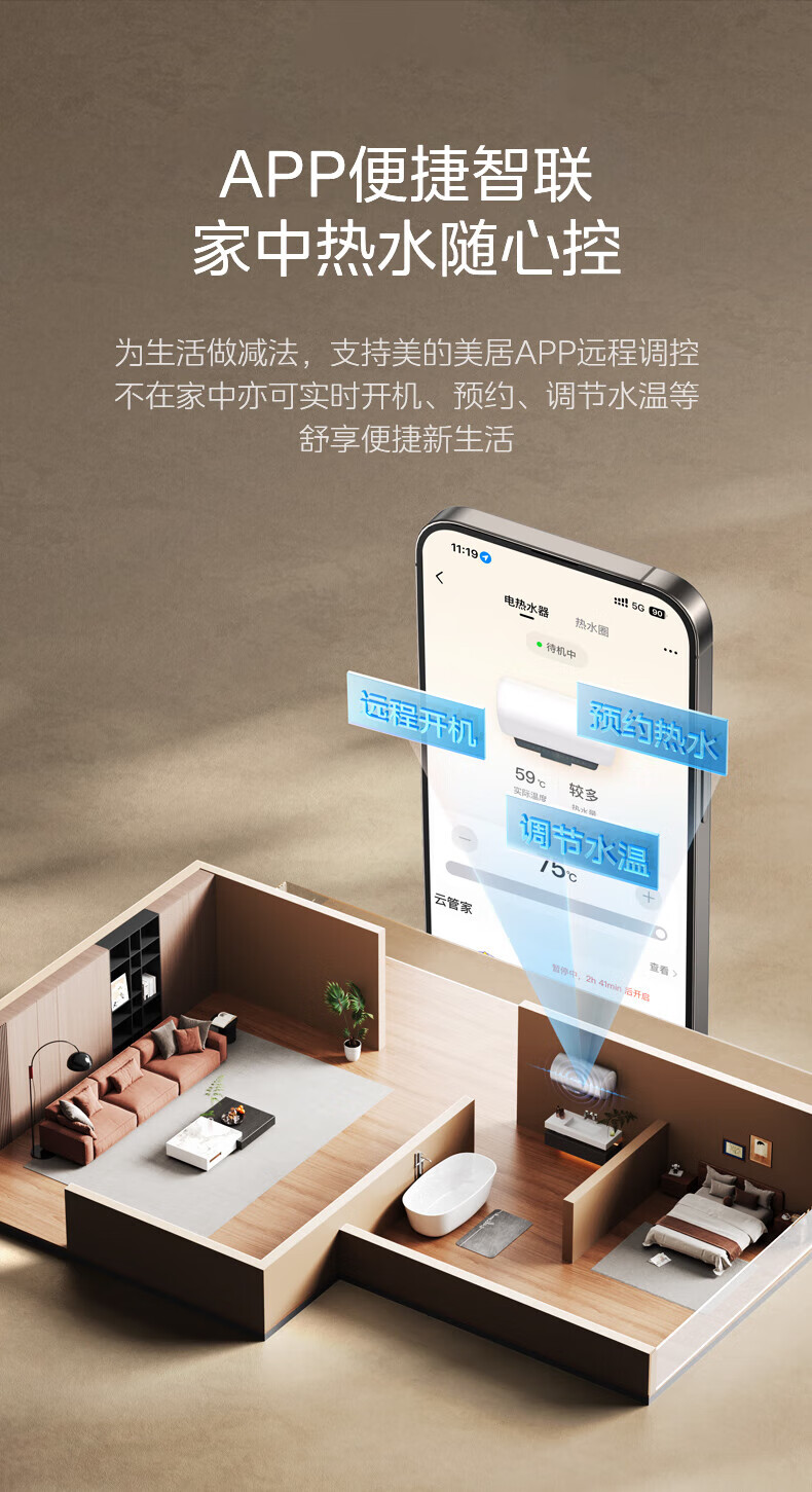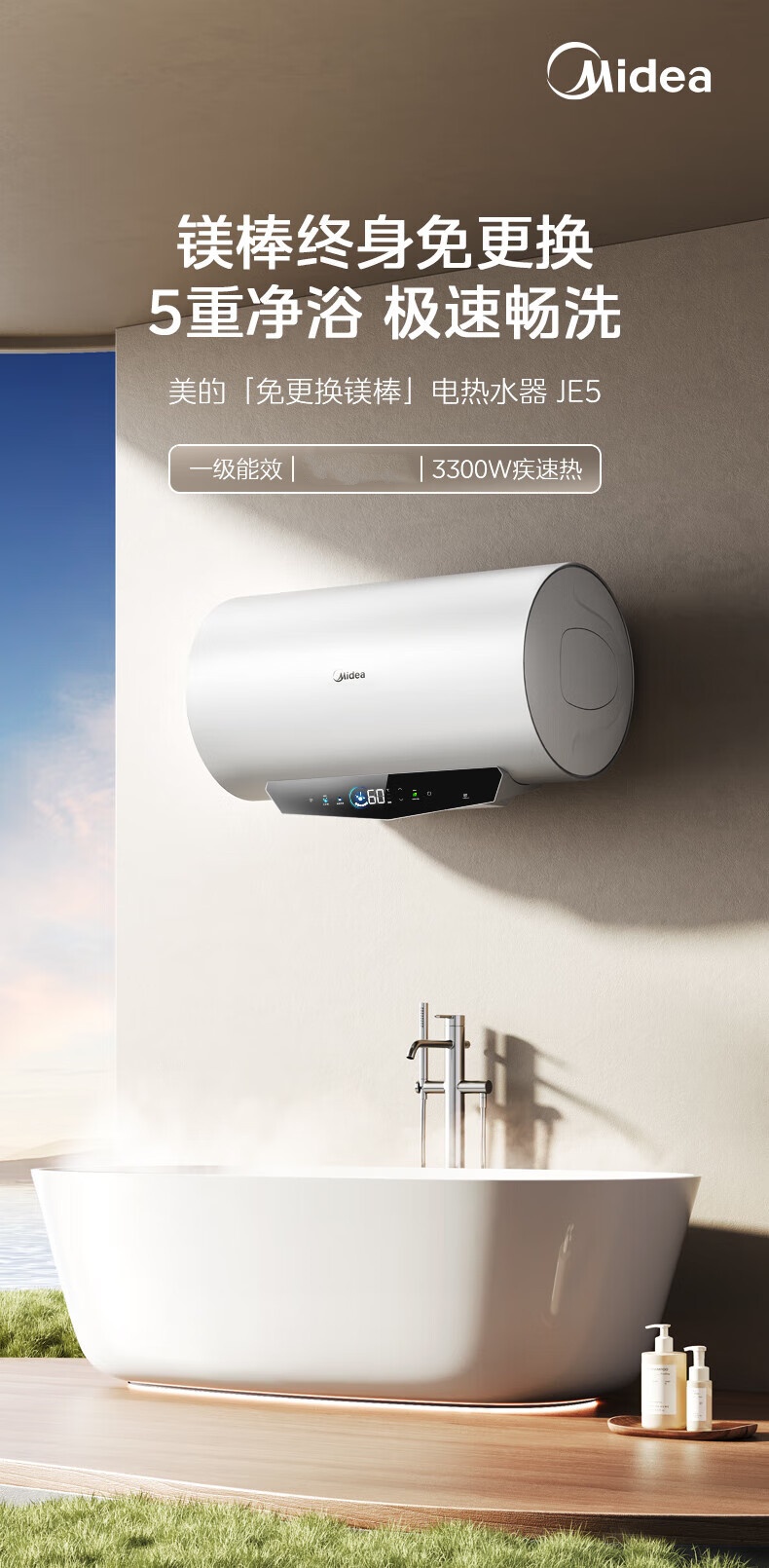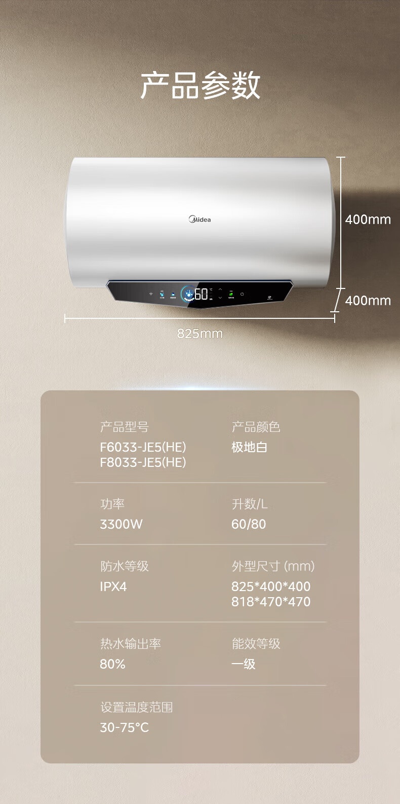 美的(Midea) F6033-JE5(HE) 即热恒温 一级能效速热APP智控 电热水器 极地白(单位:台)