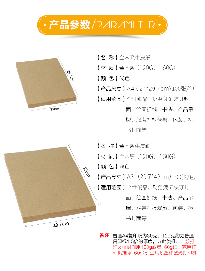 新绿天章 P3444 A3 120g 100张/包 牛皮纸 牛皮色(单位:包 )