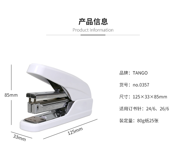 新绿天章 0357 125x33x85mm 省力订书机 白色(单位:台)