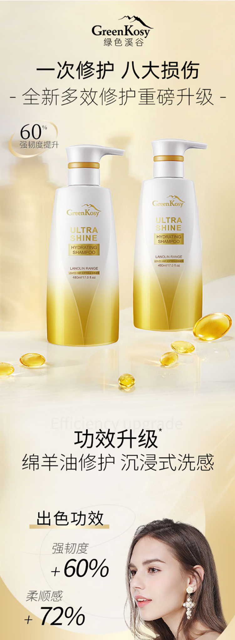 绿色溪谷(GREENKOSY) 凝脂滋养修护 480ml 发膜 香槟黄(单位:瓶)
