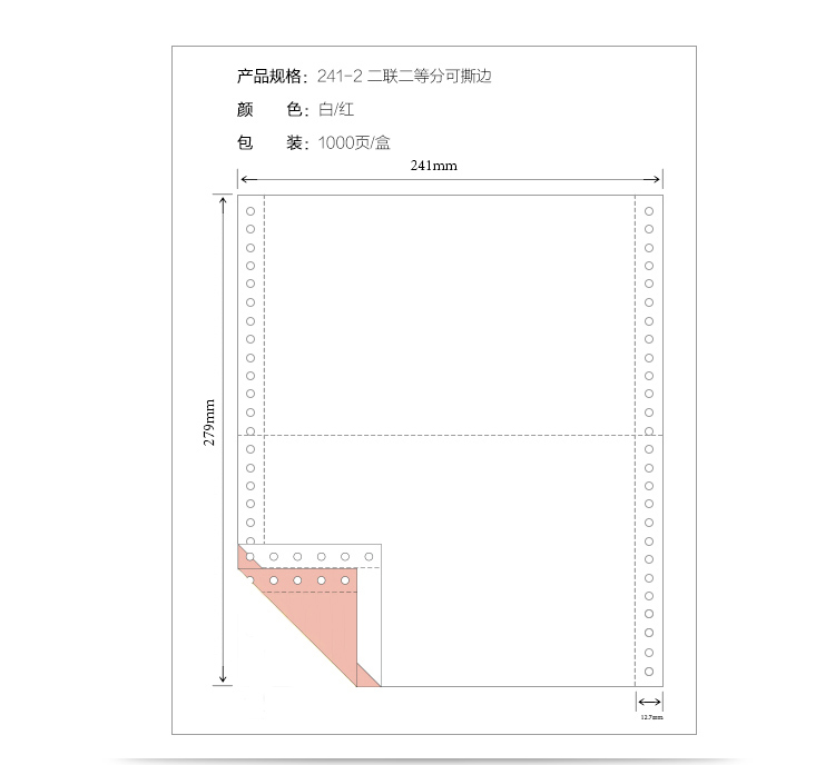 乐活天章 241-2-1/2S 1000页 二联 二等分 撕边 电脑打印纸 混色(白红)(单位:箱)