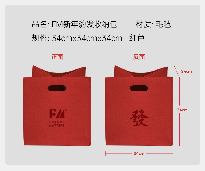 FUTURE MATTERS 豹发 34cm*34cm*34cm 毛毡豹发收纳包-新年 红色(单位:个)