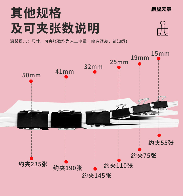 新绿天章 9010 25mm 48个/筒 长尾夹 黑色(单位:筒 )
