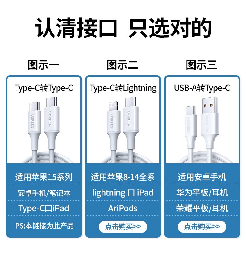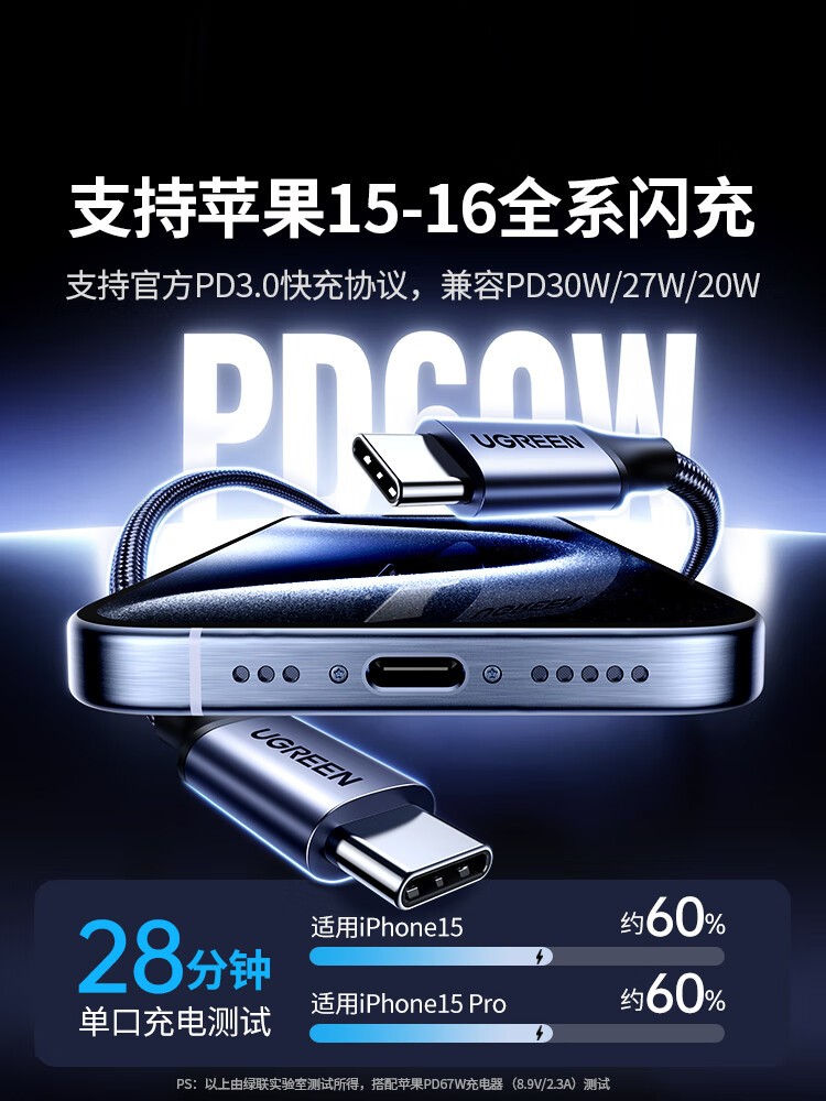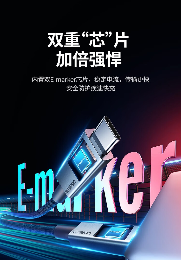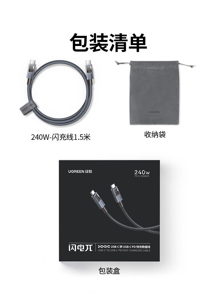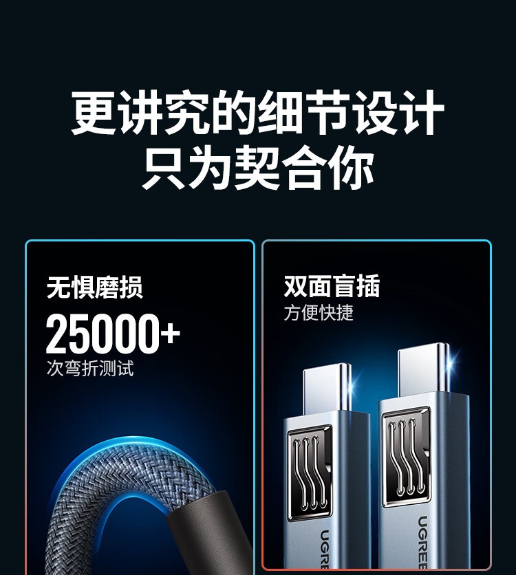 绿联(UGREEN) 15367 1.5cm 双头Type-C数据 灰色(单位:个)