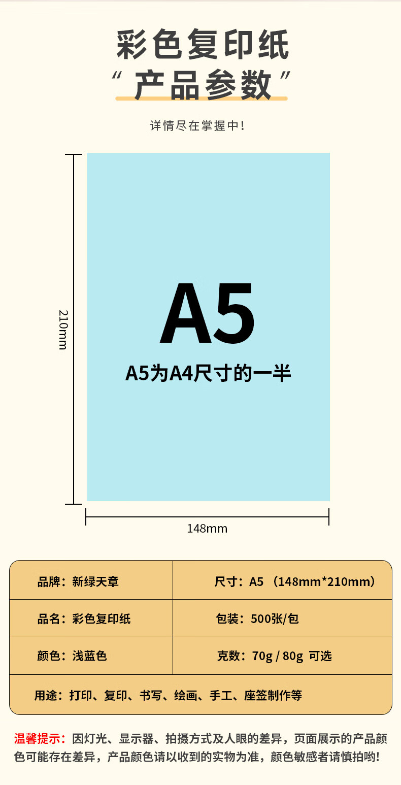新绿天章 儿童手工折纸 500张 彩色复印纸 浅蓝色(单位:包)