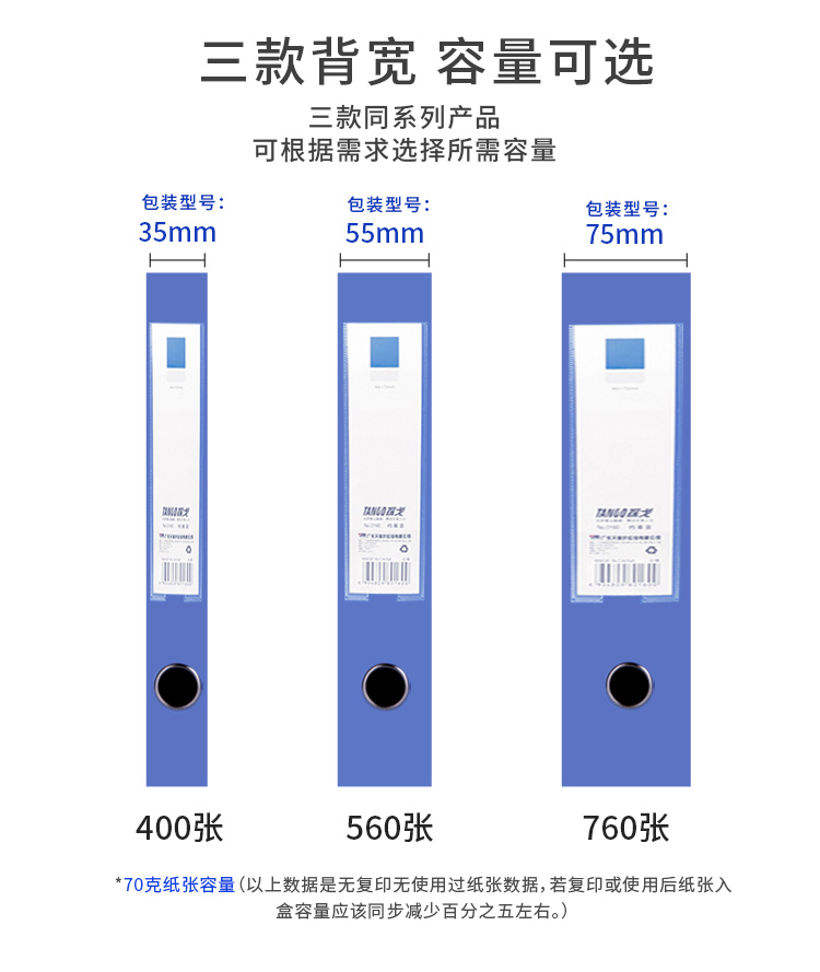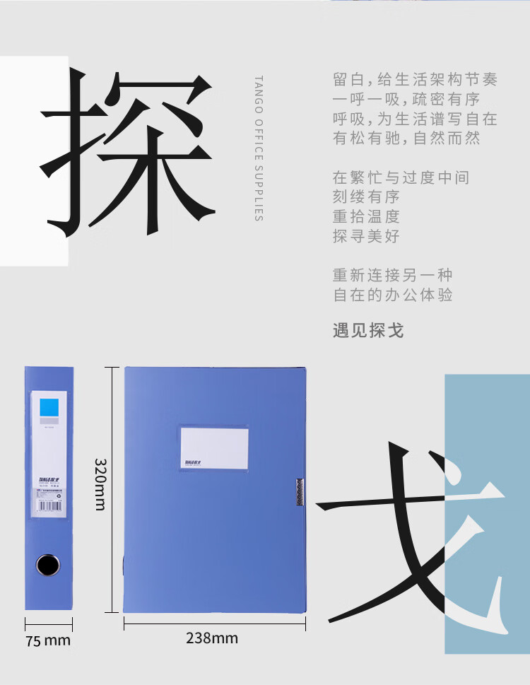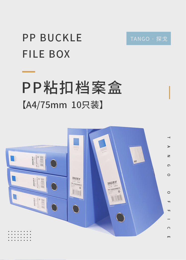 天章 (TANGO) 0163 A4/75mm 10个/箱 PP粘扣档案盒 蓝色(单位:箱)