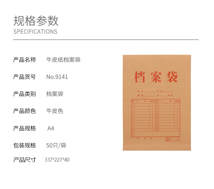 新绿天章 P9141 A4/40MM 175G 50个/包 牛皮纸档案袋 (单位:包 )