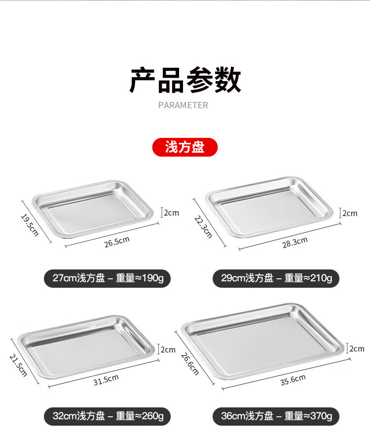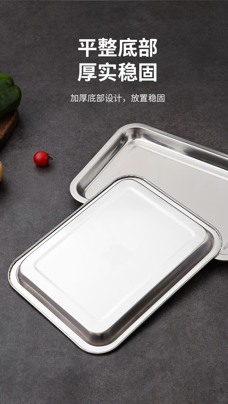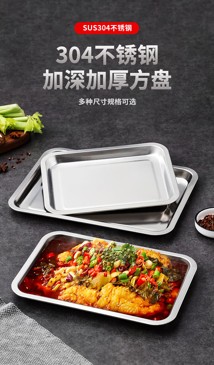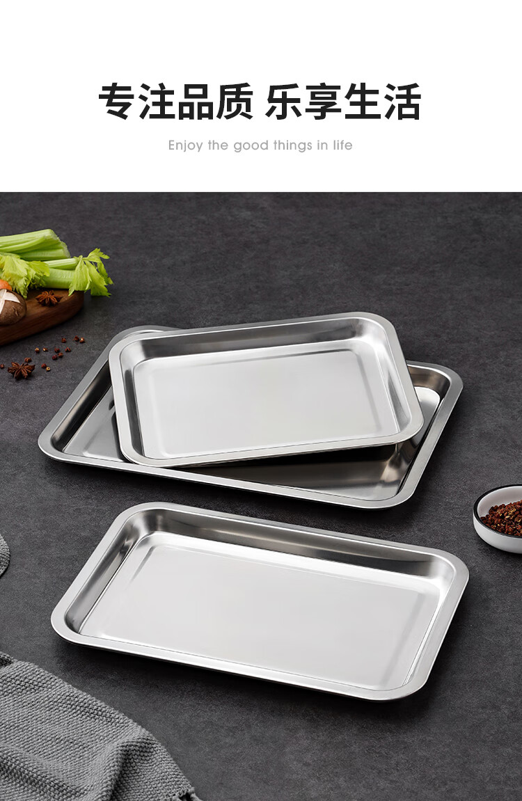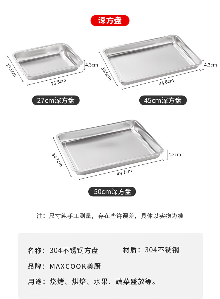 美厨304不锈钢盘子方盘 加深方盘长方形餐盘 烧烤托盘 27cm MCFT6531(单位:个)