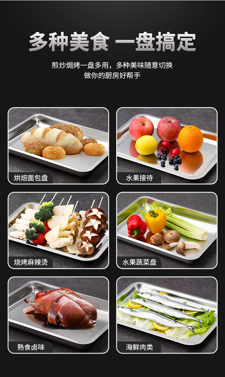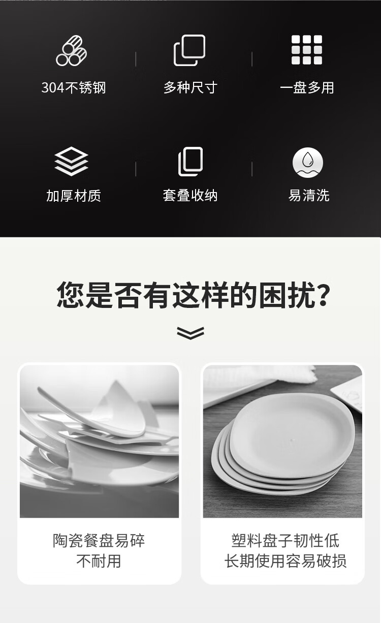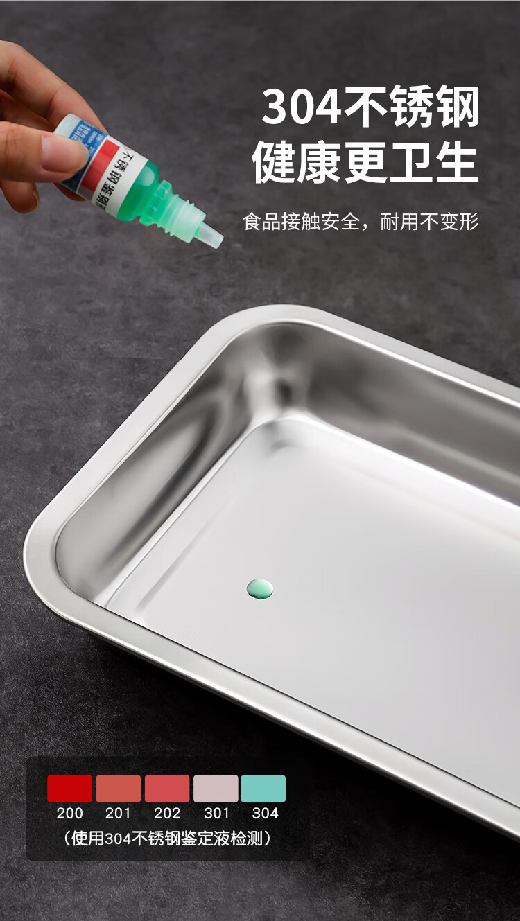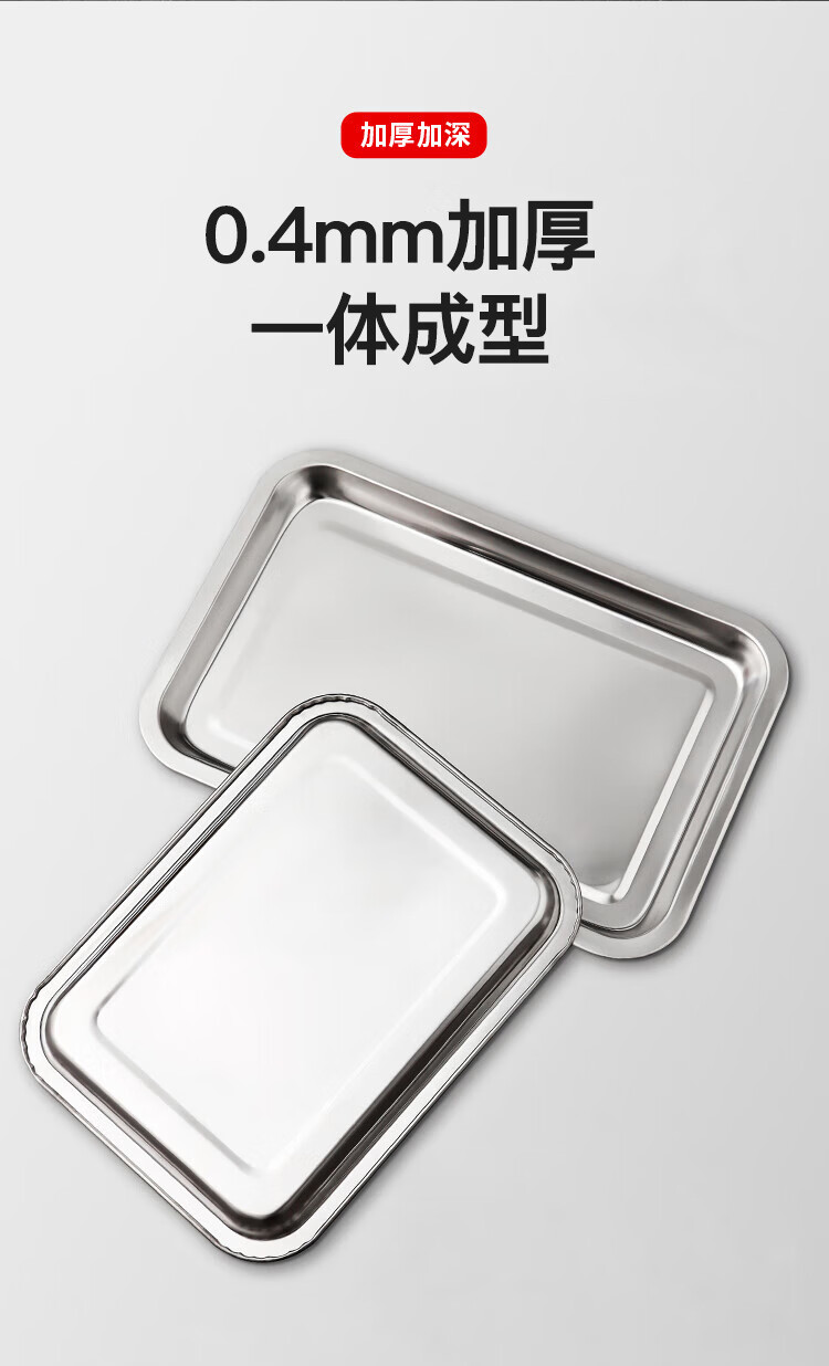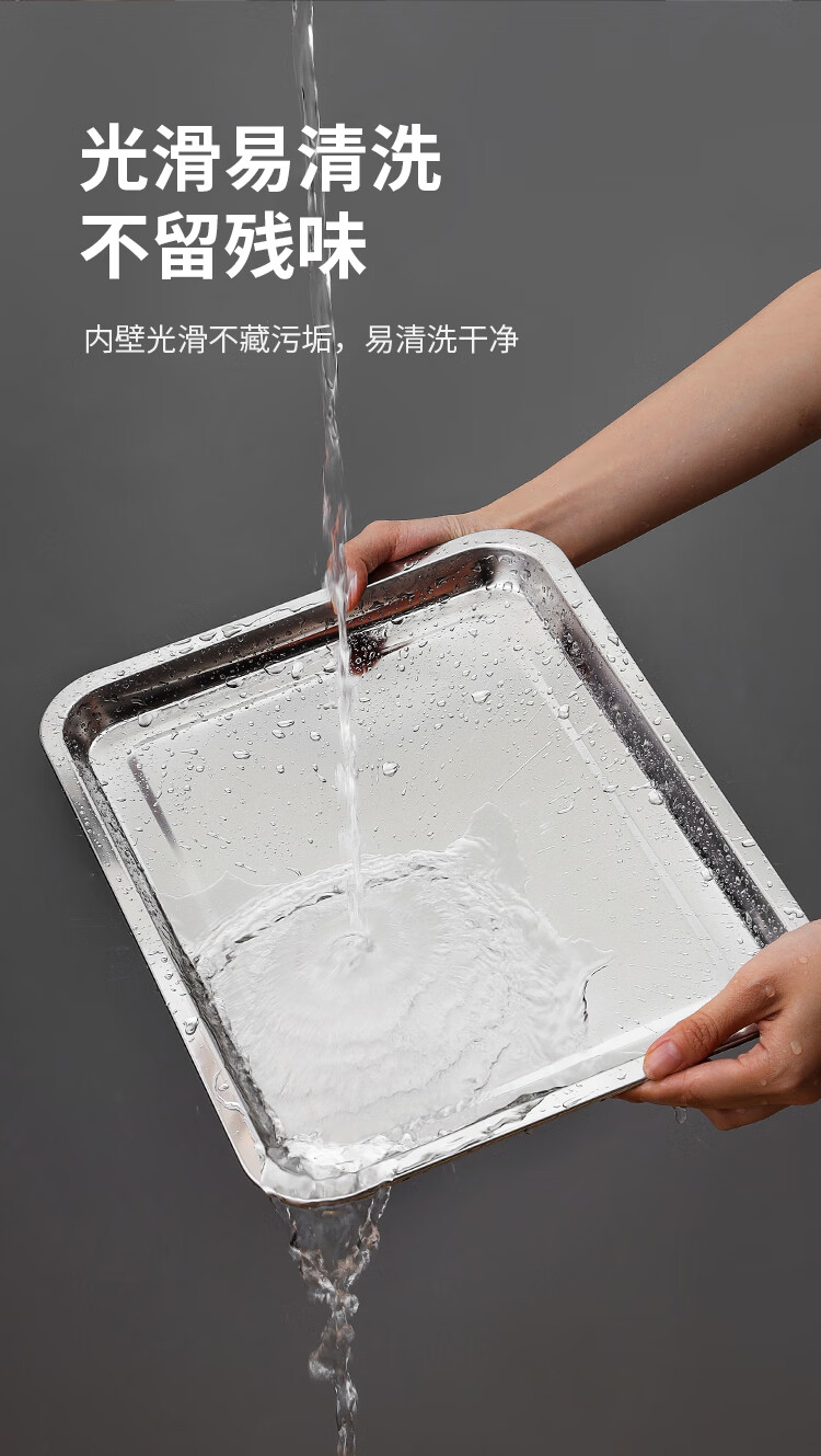 美厨304不锈钢盘子方盘 加深方盘长方形餐盘 烧烤托盘 27cm MCFT6531(单位:个)