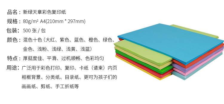 新绿天章 儿童手工折纸 80克 A4 500张 彩色复印纸 混色(单位:包)