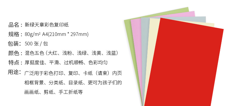 新绿天章 儿童手工折纸 80克 A4 500张 彩色复印纸 混色(单位:包)