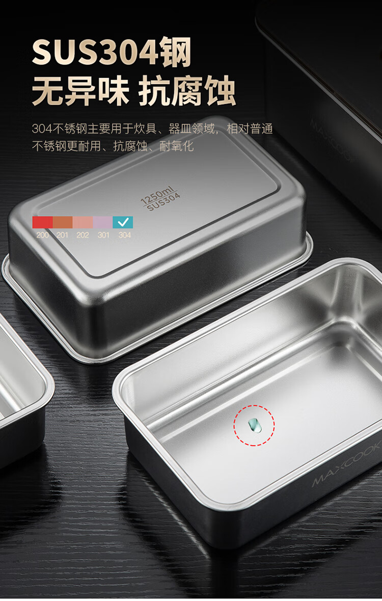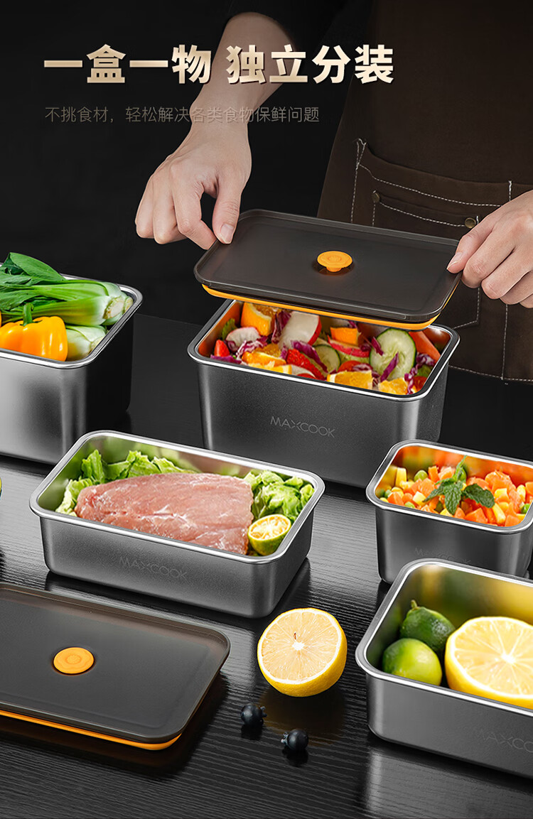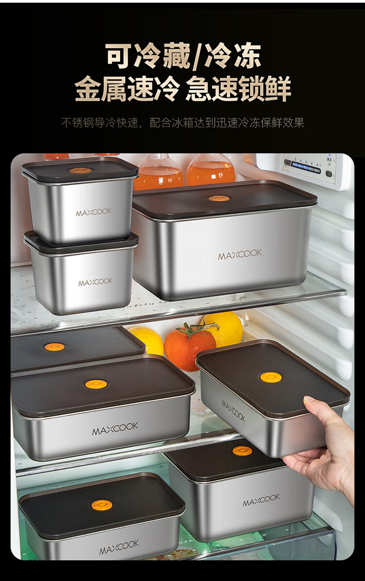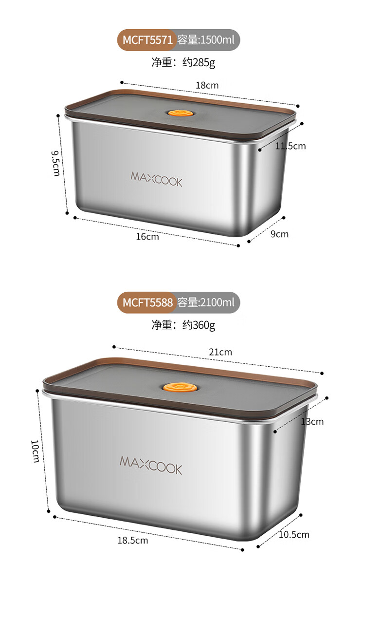 美厨(maxcook) MCFT5588 2.1L 保鲜盒储物盒 不锈钢色(单位:个)