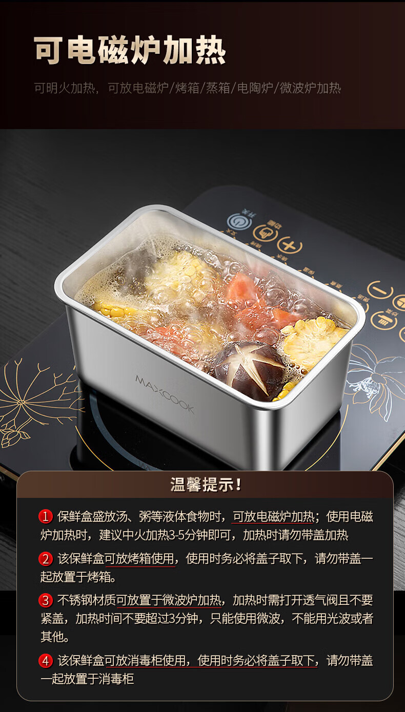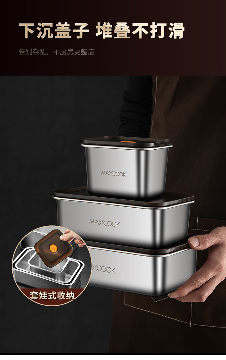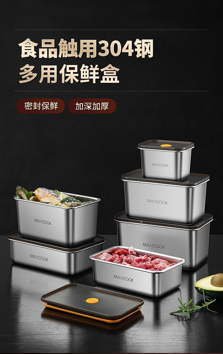美厨(maxcook) MCFT5588 2.1L 保鲜盒储物盒 不锈钢色(单位:个)