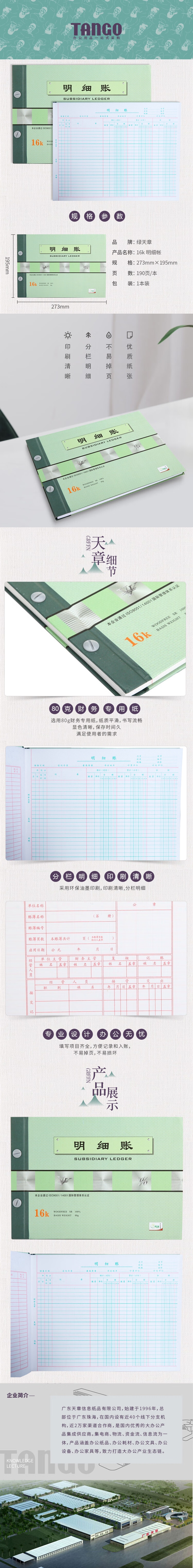 天章 (TANGO) 成本核算 190页 16k活页账本明细帐 浅杉绿(单位:本)