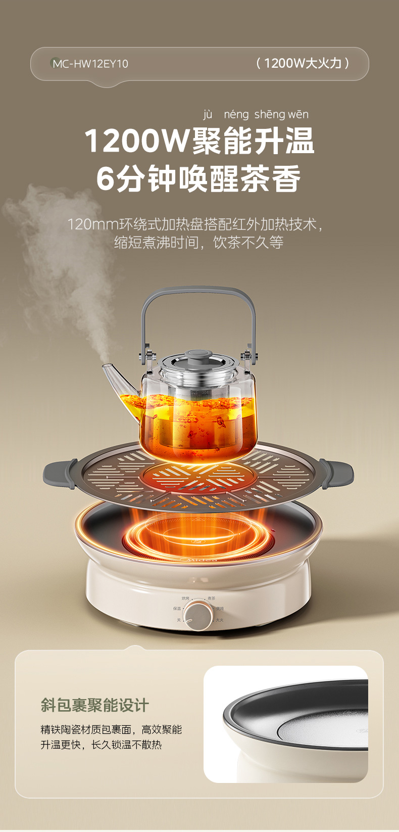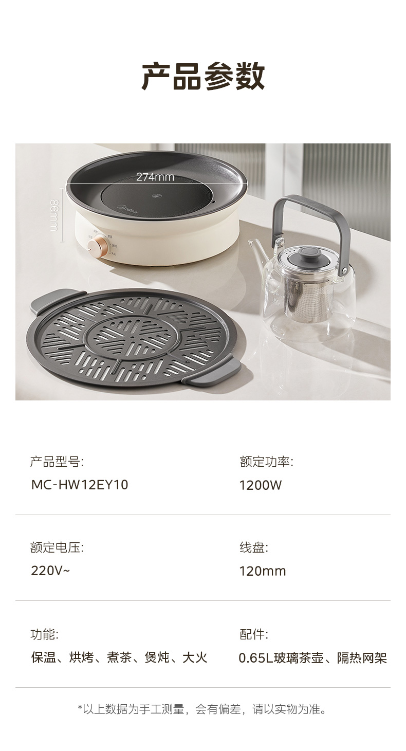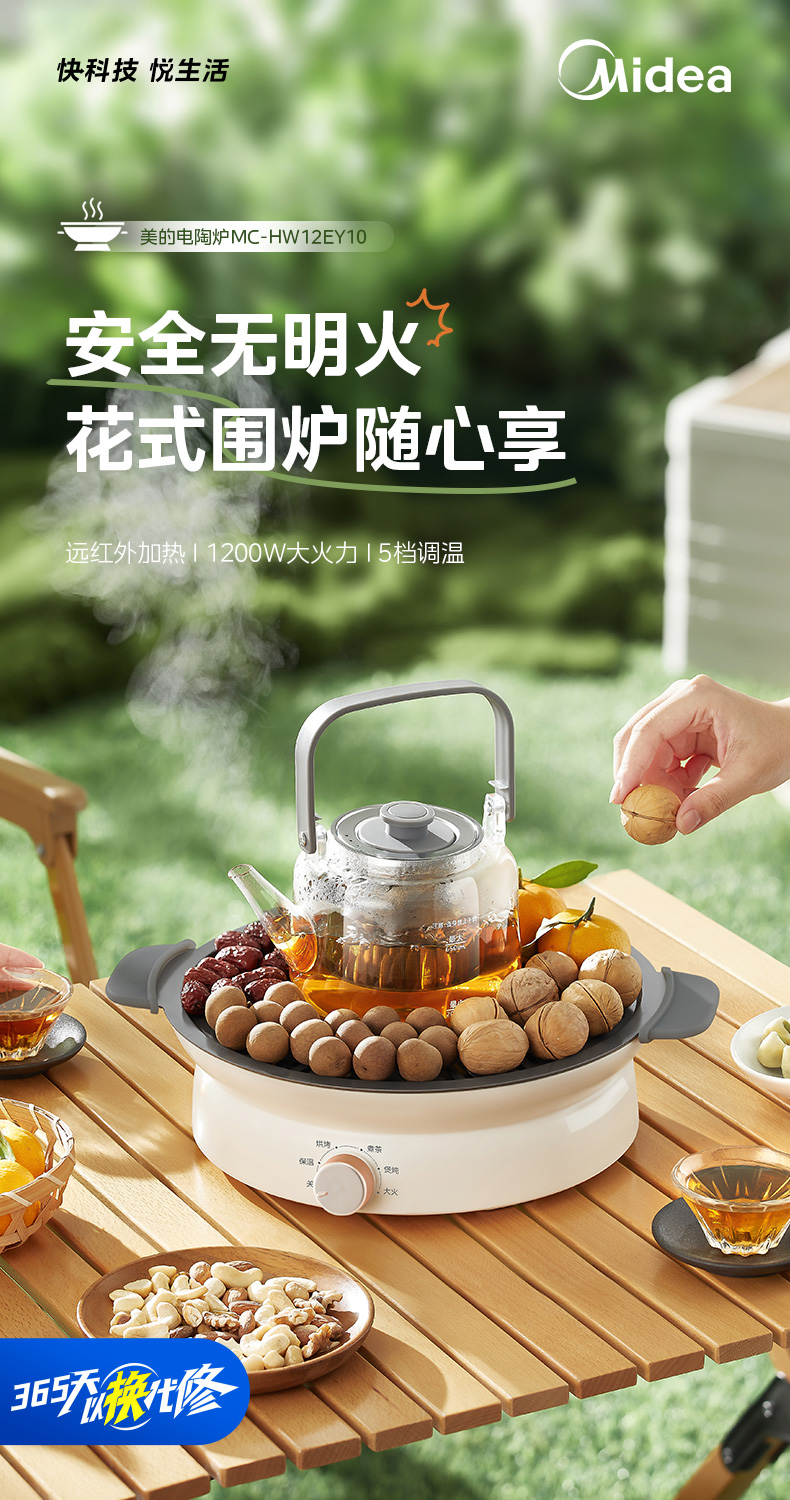 美的(Midea) MC-HW12EY10 1200W 电陶炉电磁炉围炉煮茶 白色(单位:台)