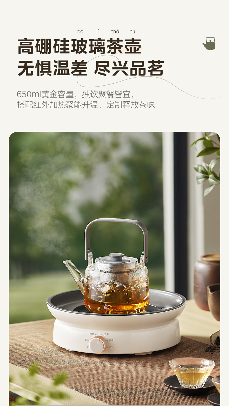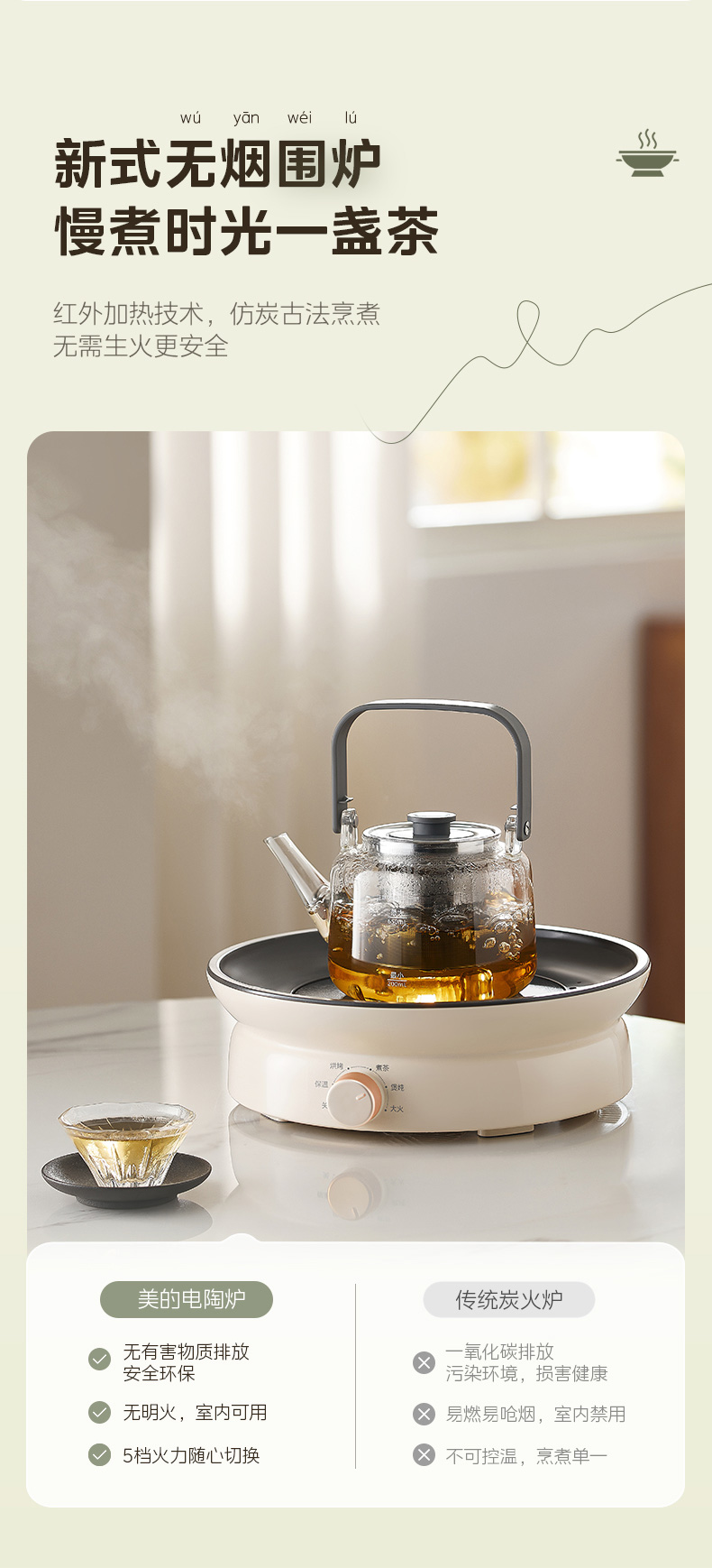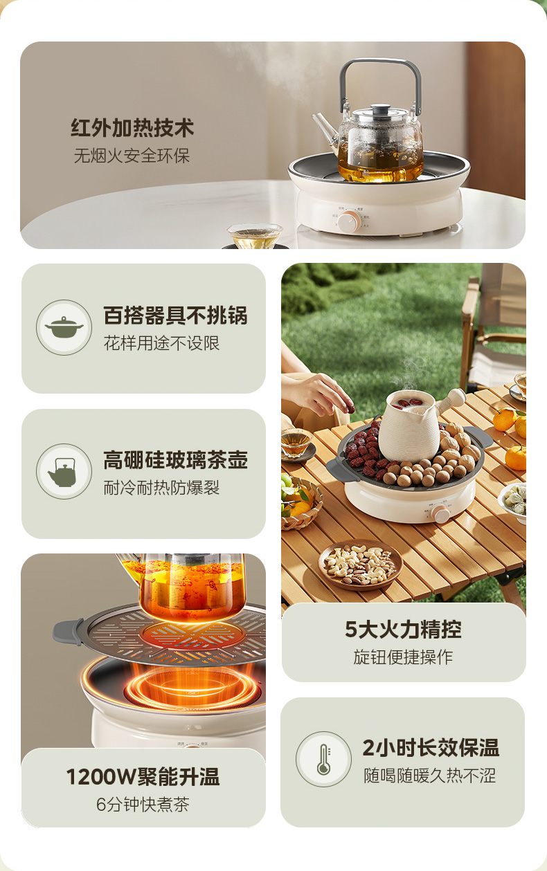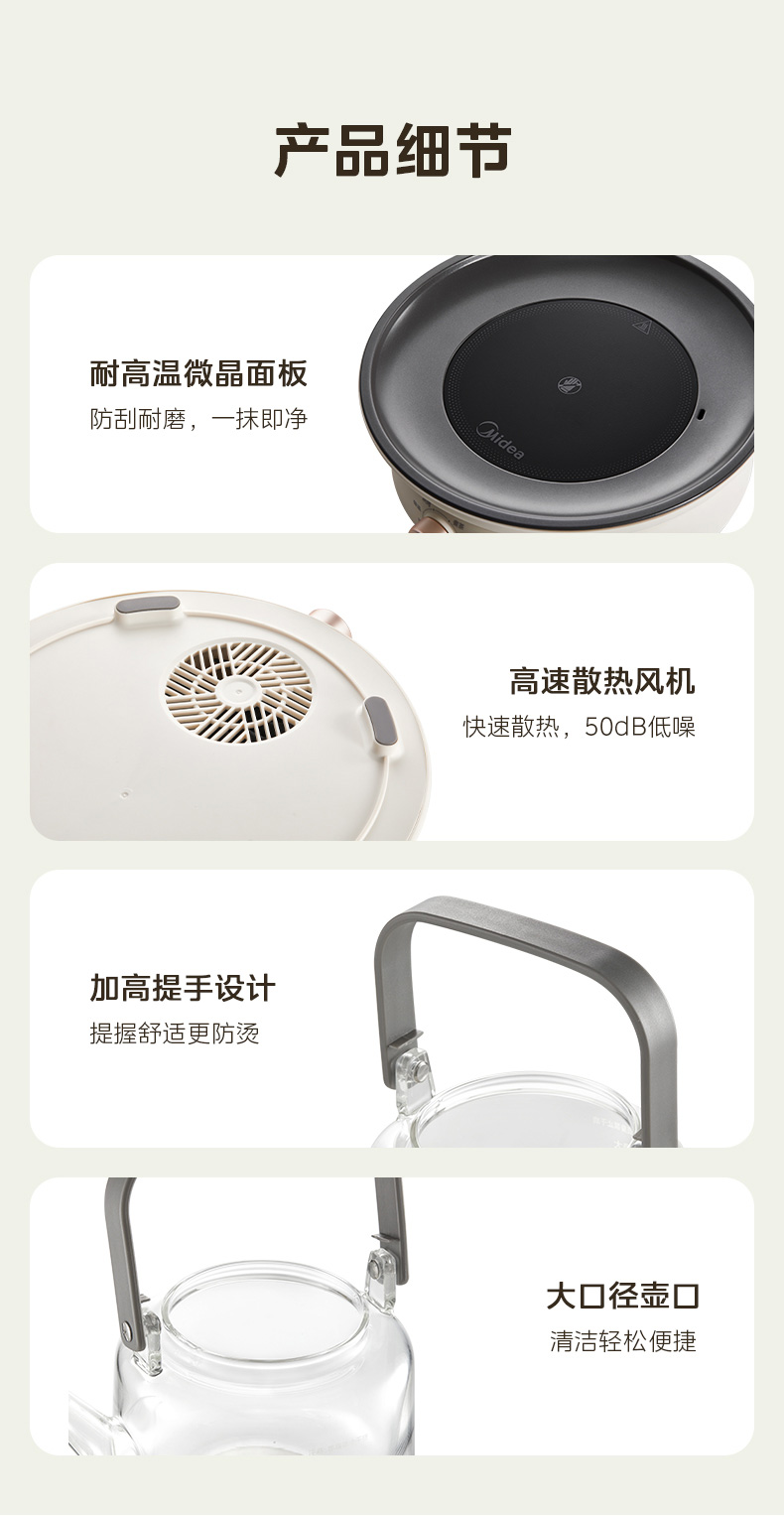 美的(Midea) MC-HW12EY10 1200W 电陶炉电磁炉围炉煮茶 白色(单位:台)