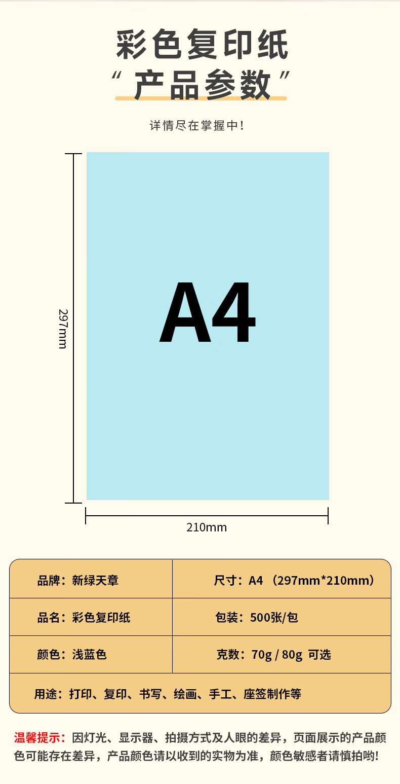 新绿天章 儿童手工折纸 A4 70g 500页 彩色复印纸 浅蓝色(单位:包)