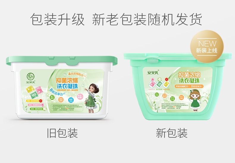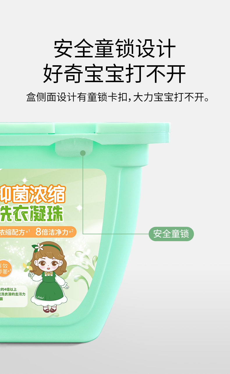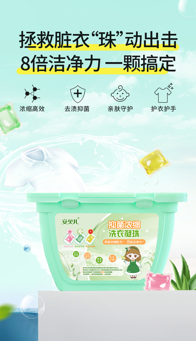 安贝儿 洗衣凝珠 3罐(8g*50粒) 99%抑菌浓缩除螨 绿色(单位:罐)