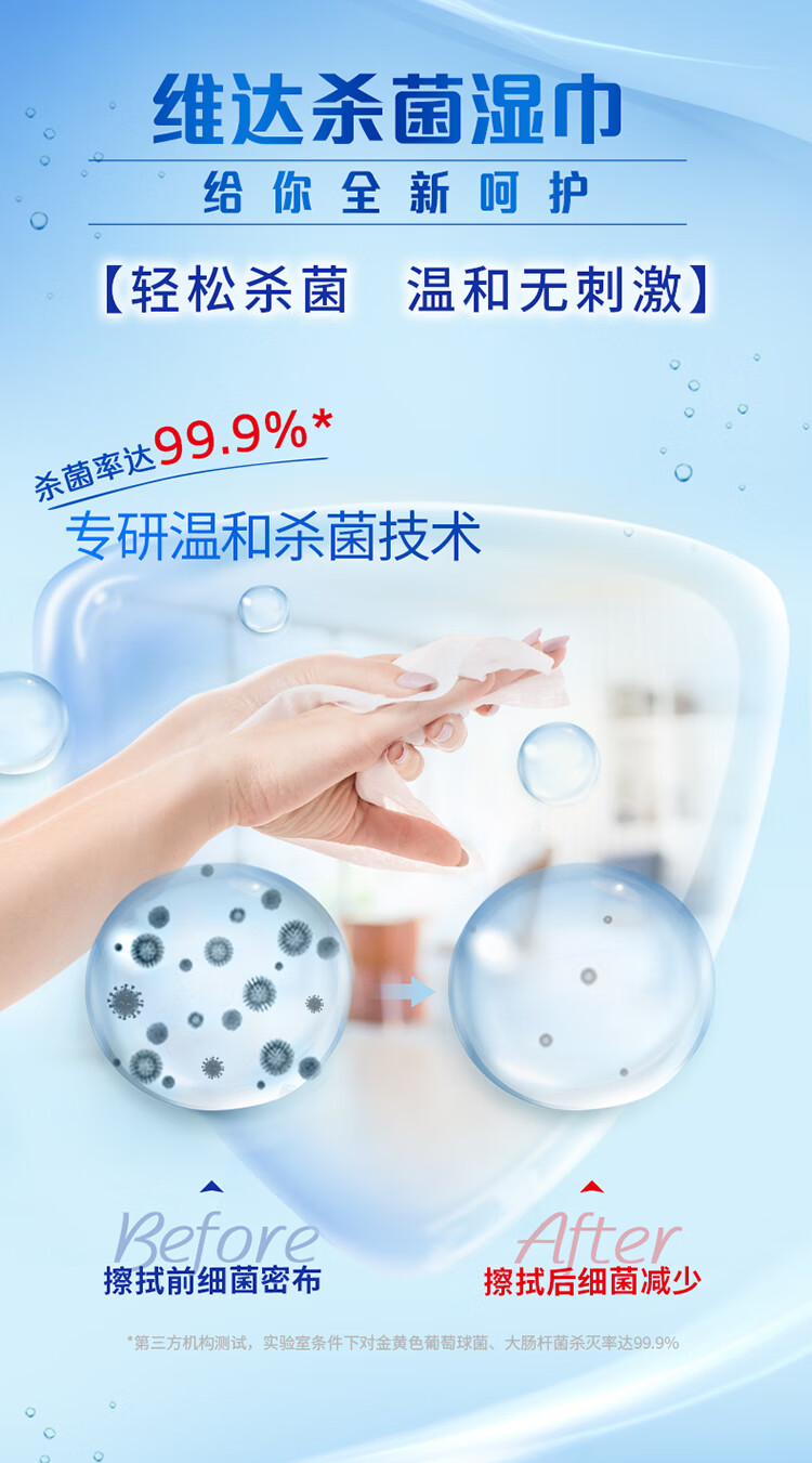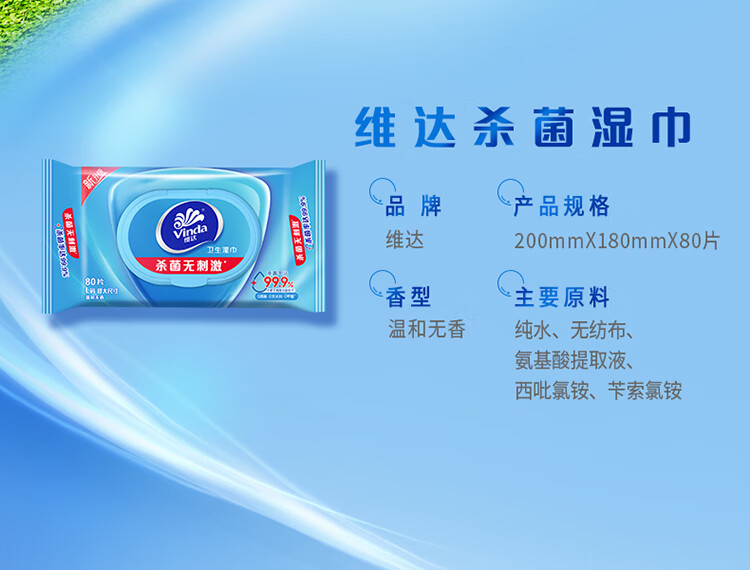 维达 VW1028 80片 杀菌湿巾 蓝色(单位:包)