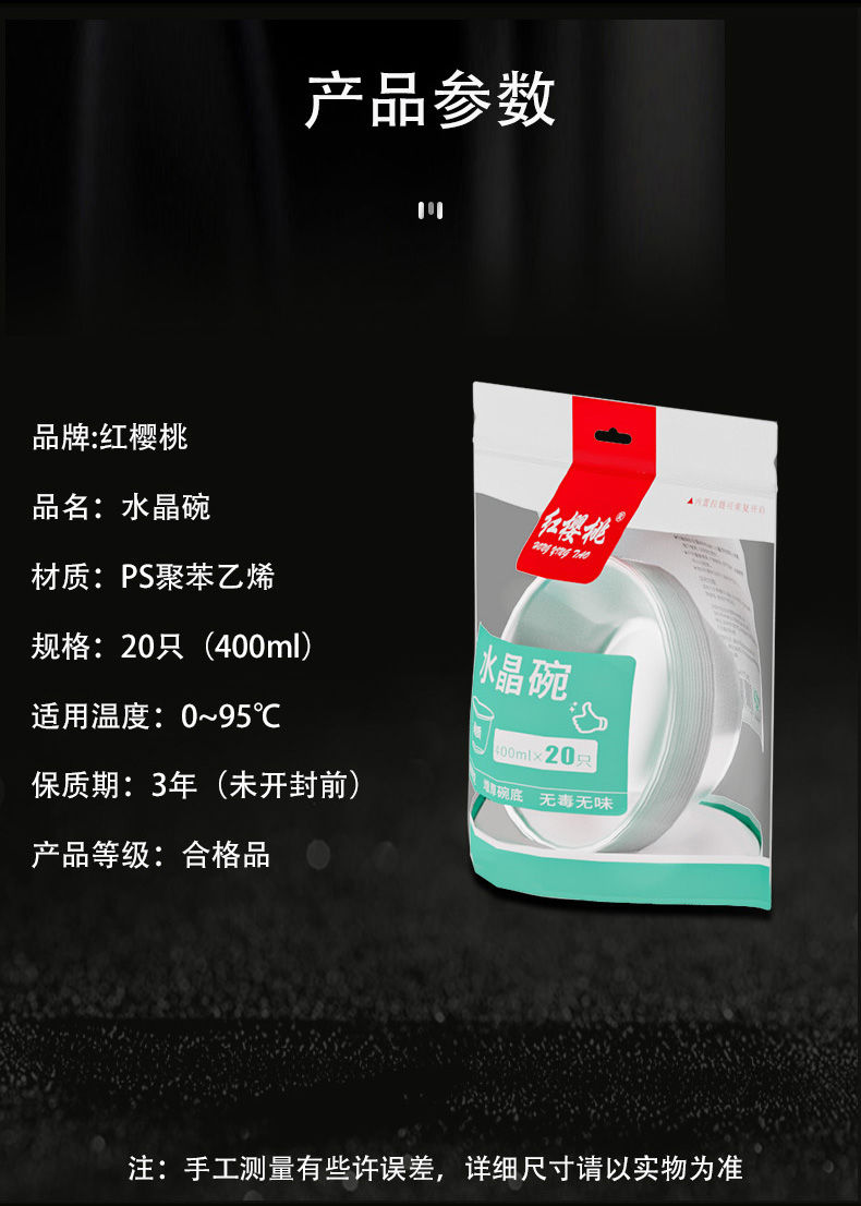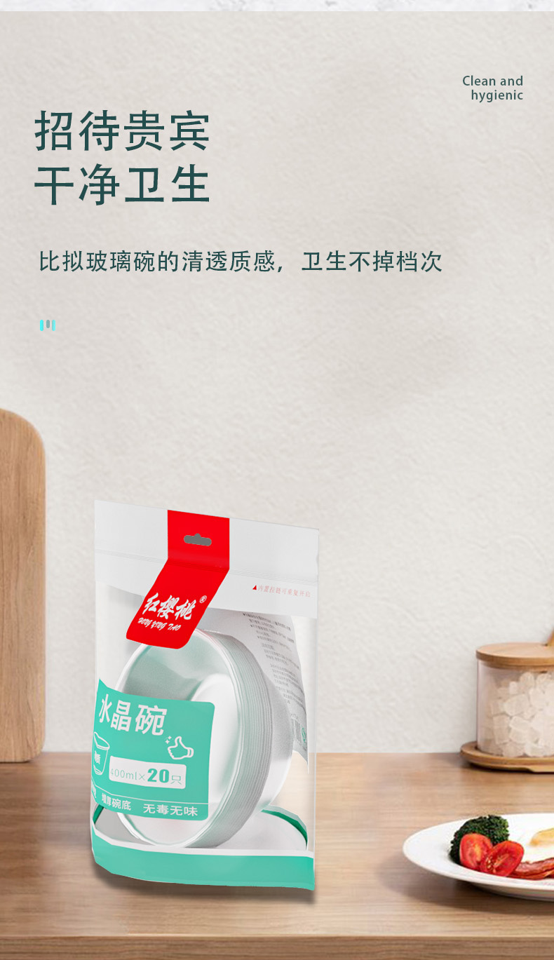 红樱桃 HYT1462 2包(共40只) 一次性硬质水晶碗 透明色(单位:包)