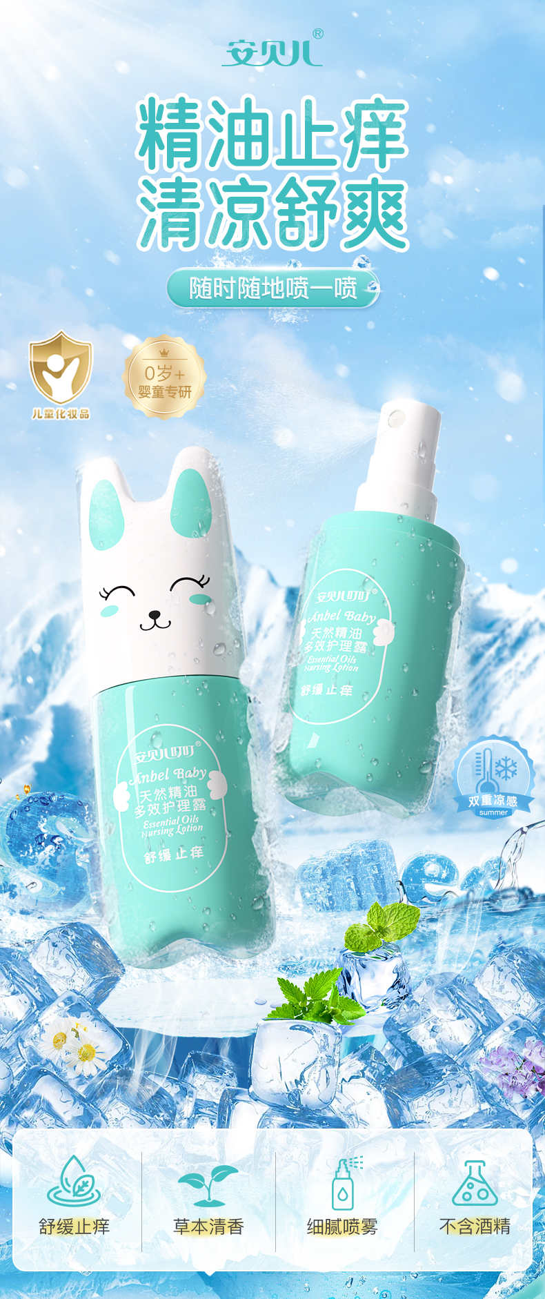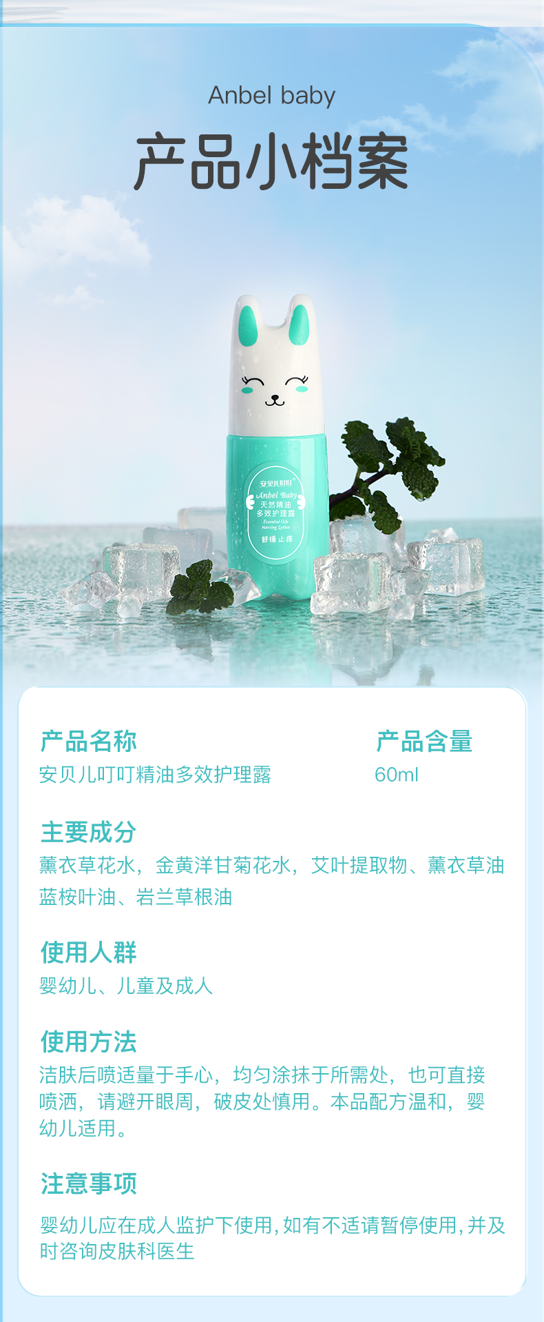 安贝儿 护理露 60ml 天然精油走珠喷雾 蓝色(单位:支)