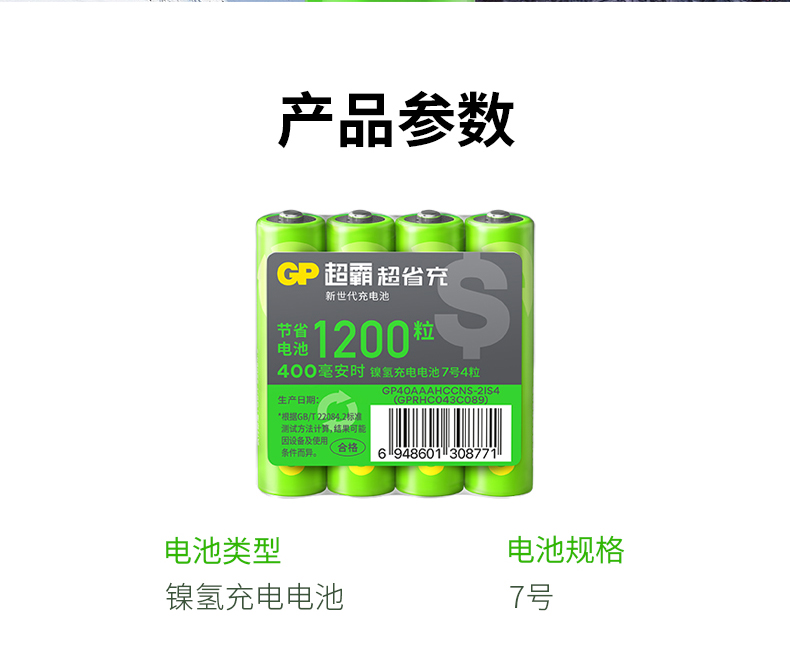 GP超霸 5号4粒 800毫安时 充电电池 绿色(单位:节)