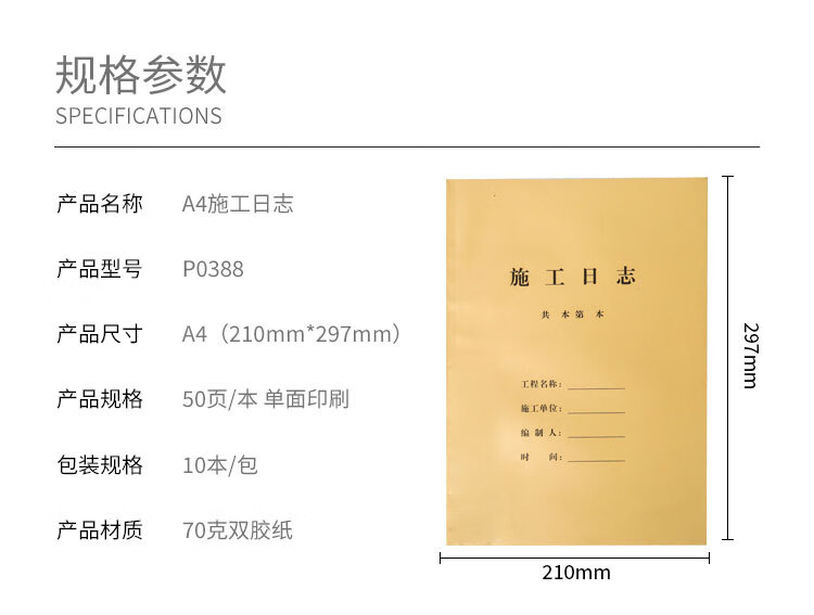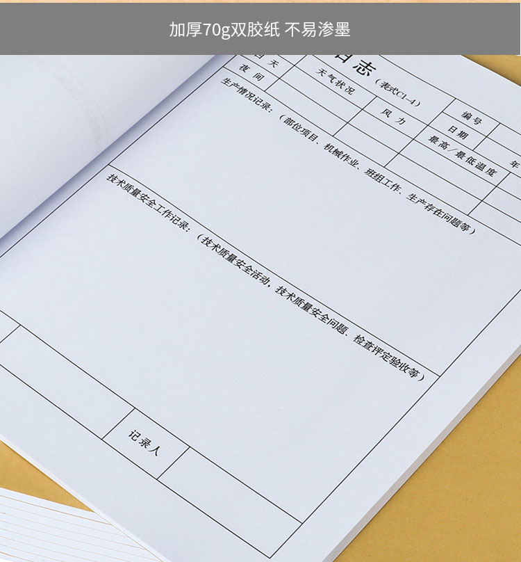 新绿天章 P0386 表式C1-4 70G 50页/本 10本/包 A4 施工日志 琥珀色(单位:包 )