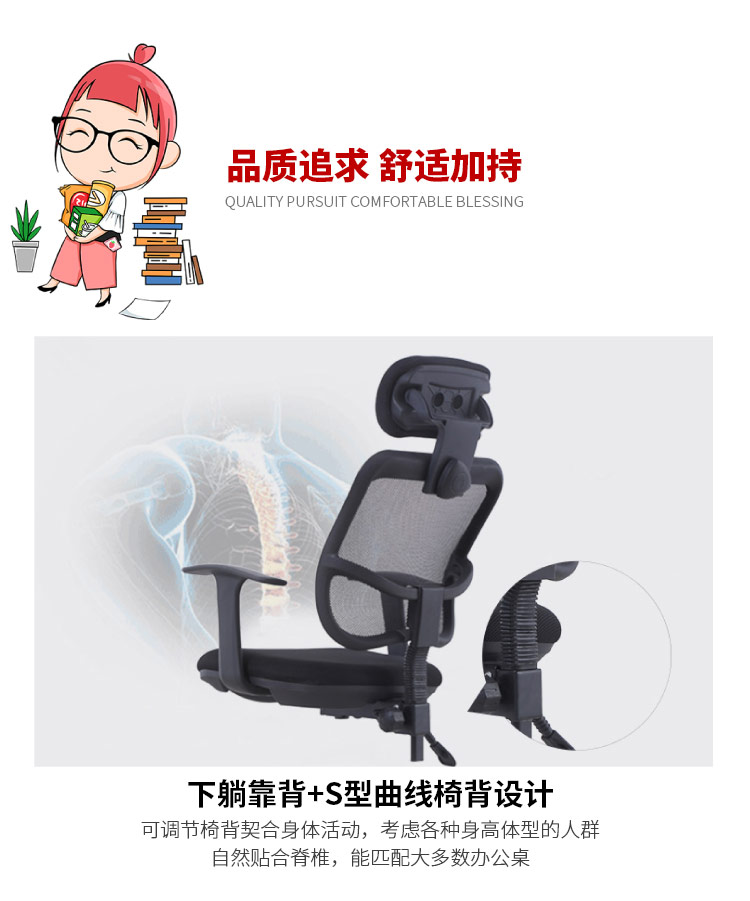 乐活天章 人体工学午休椅 1150*590mm 人体工学办公椅 黑色(单位:把)