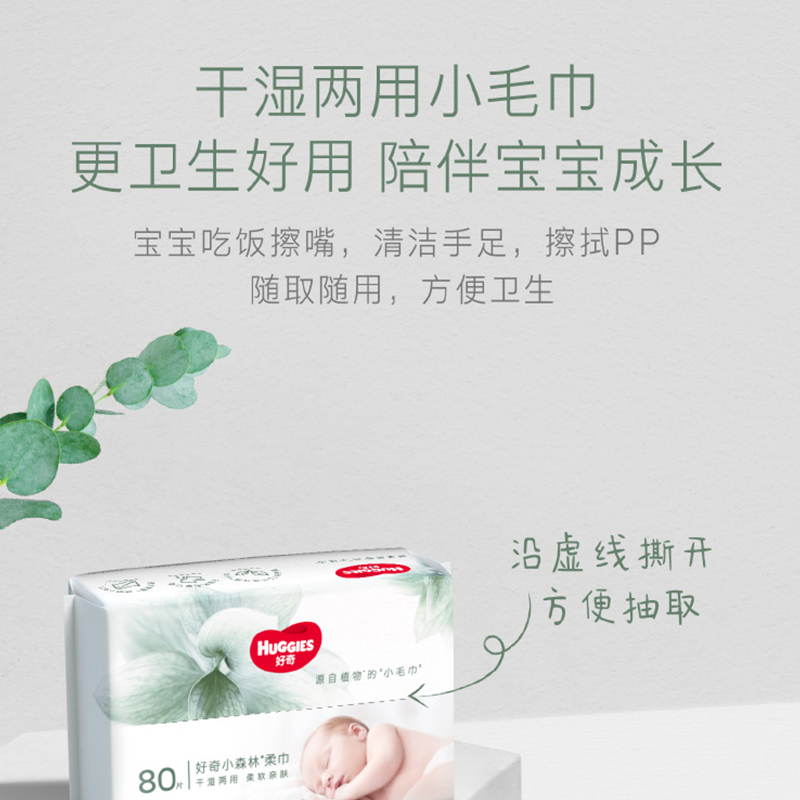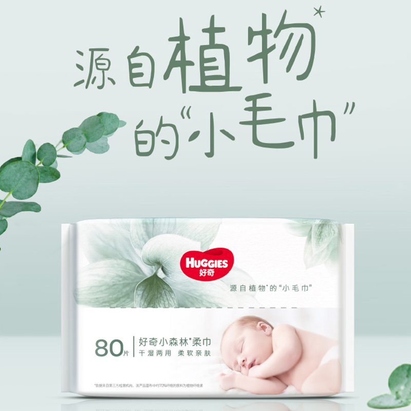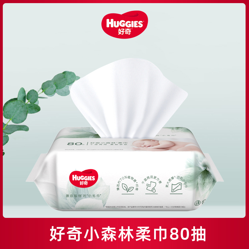 好奇(Huggies) 小森林柔巾 80抽*6包 干湿两用纸巾婴儿湿巾 淡绿色(单位:组)