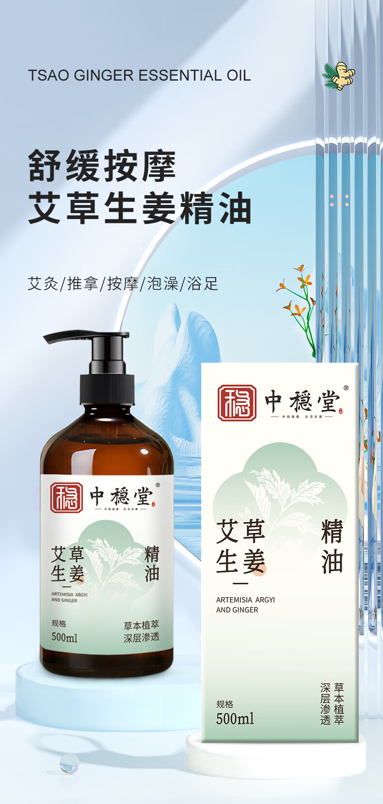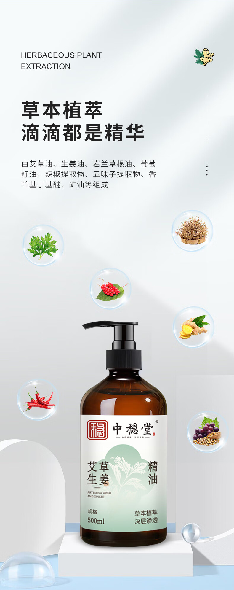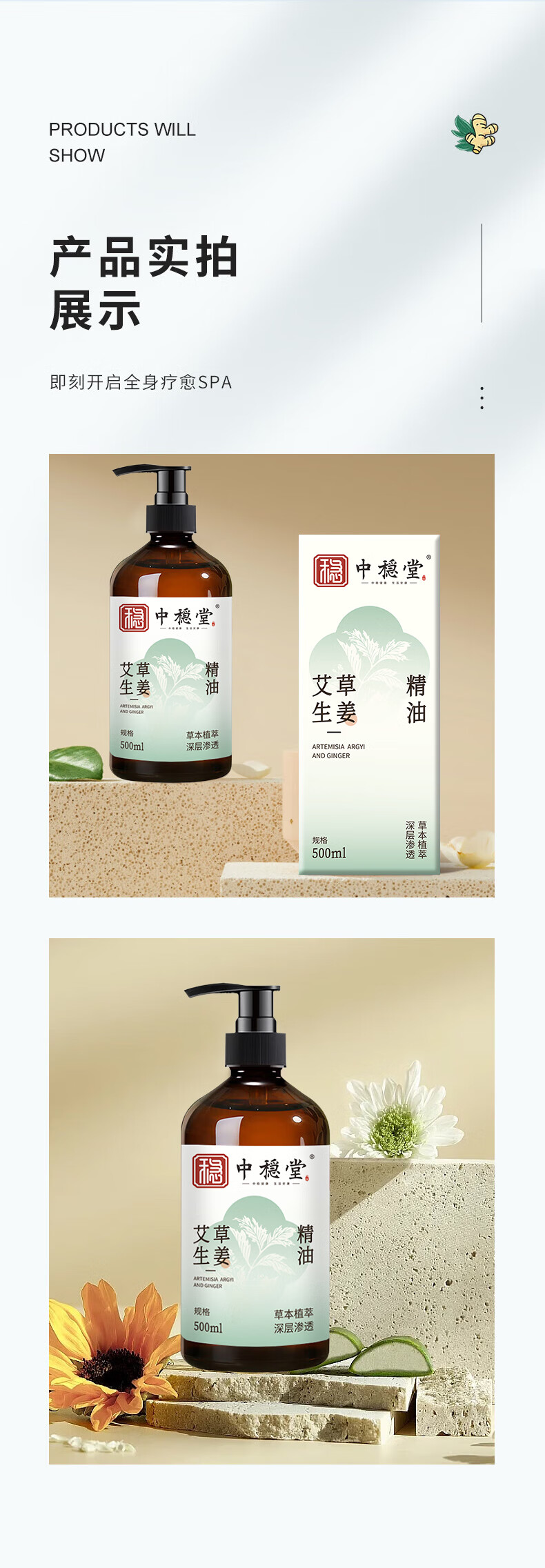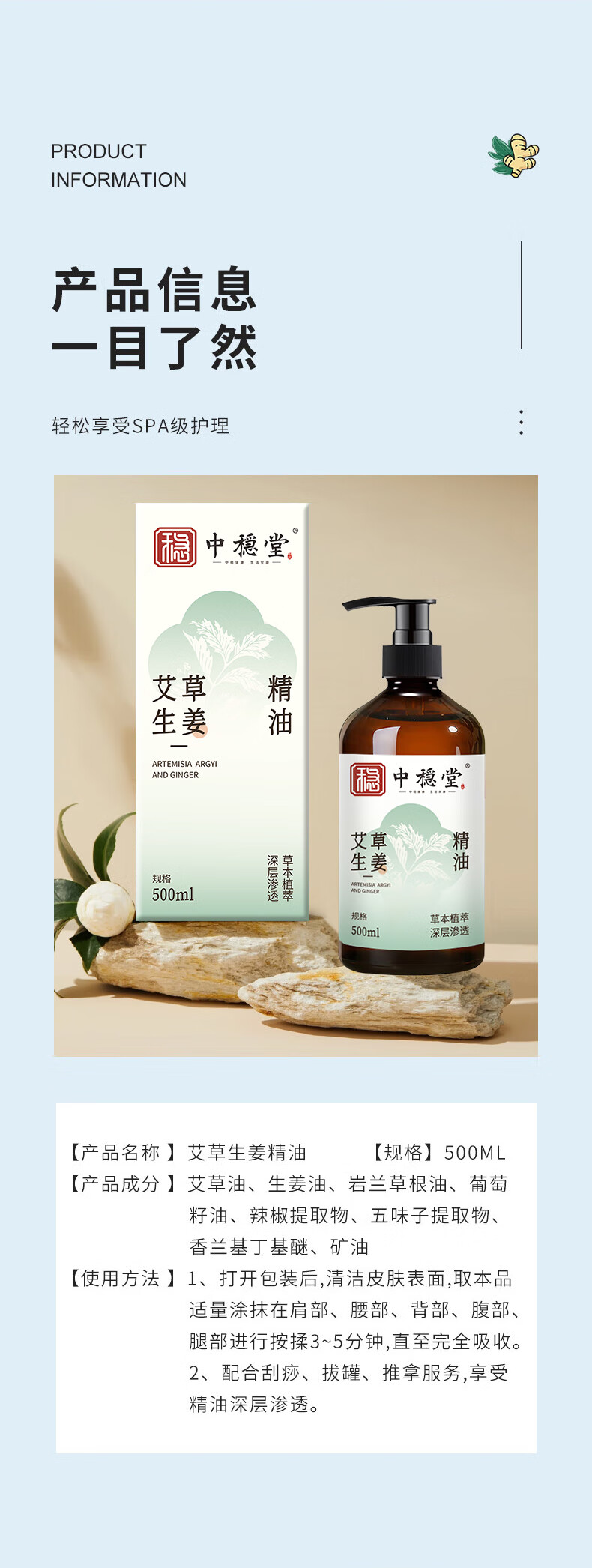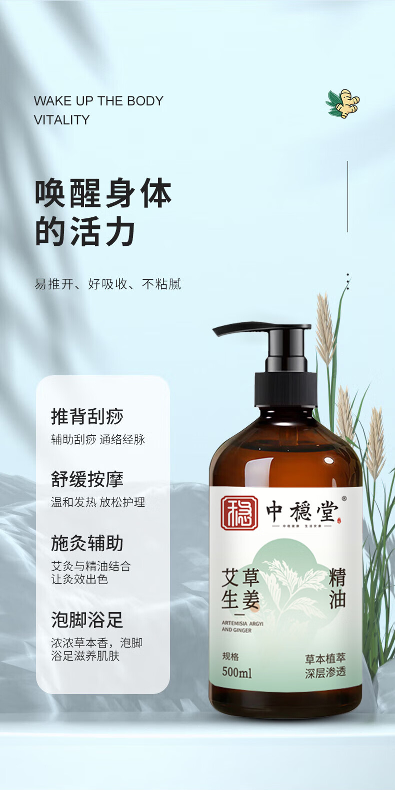 中稳堂 艾草生姜精油 500ml 按摩油 绿色(单位:瓶)