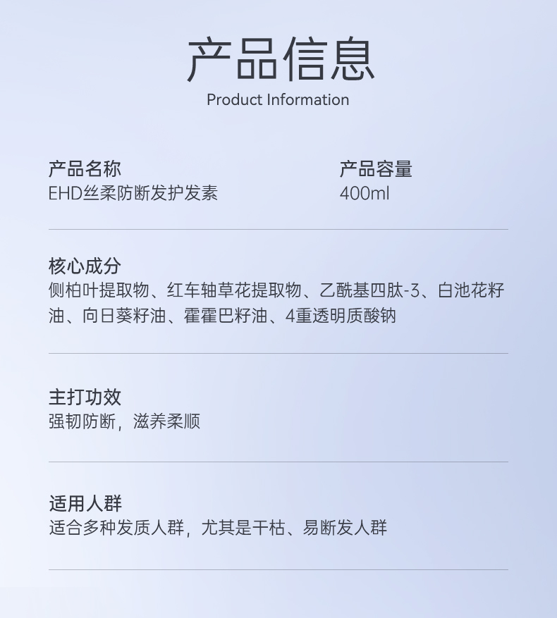 EHD 护发素 丝柔防断发 400ml 白色(单位:瓶)