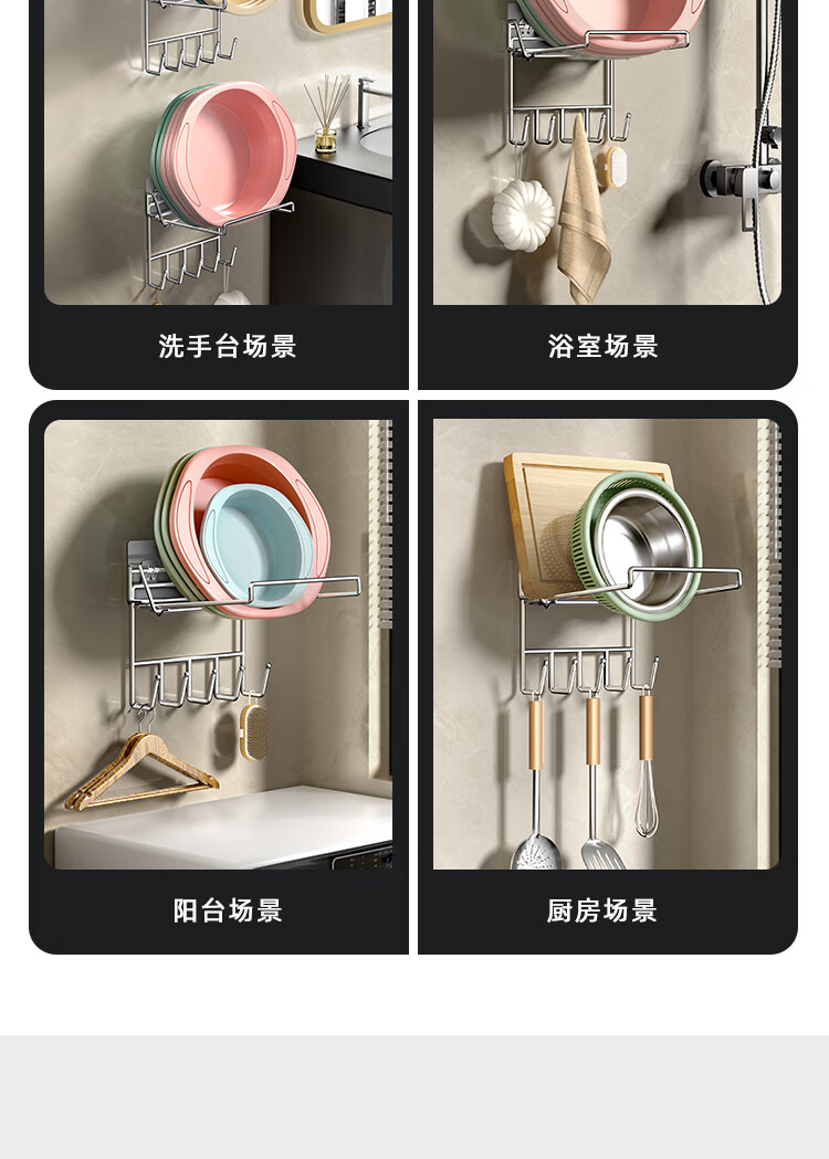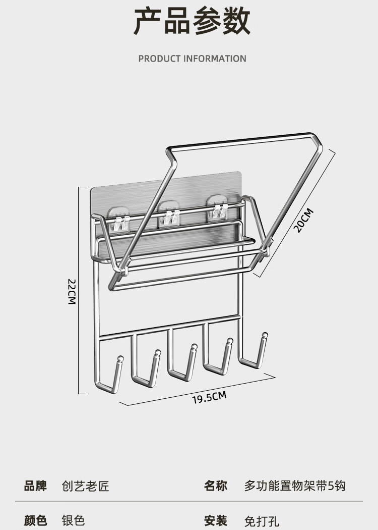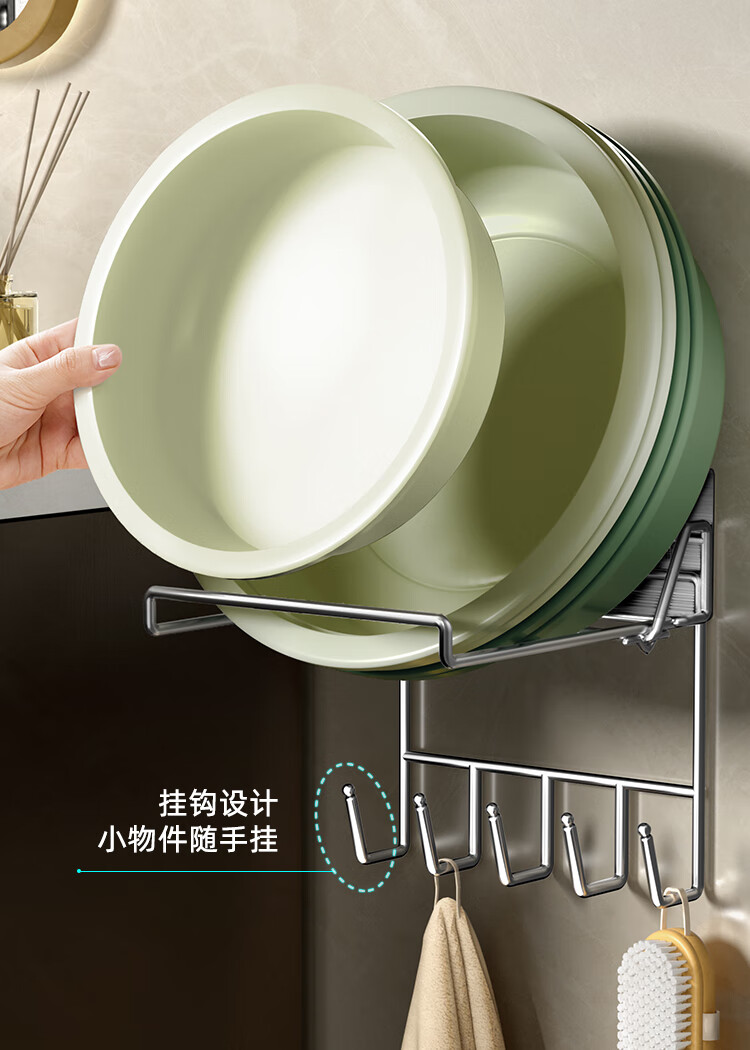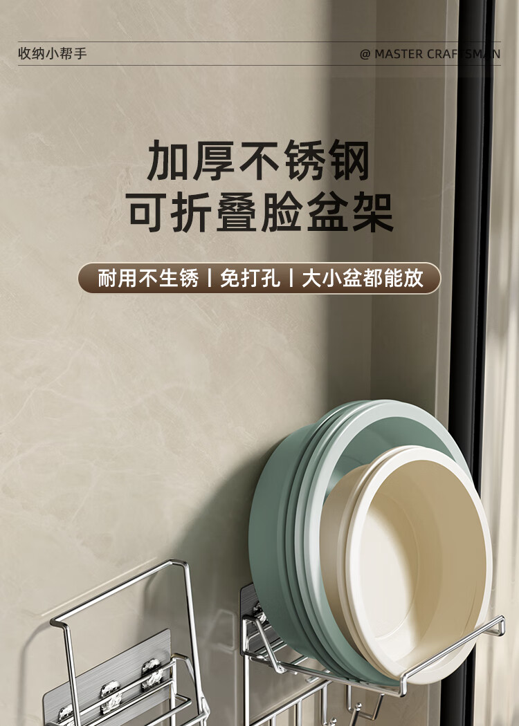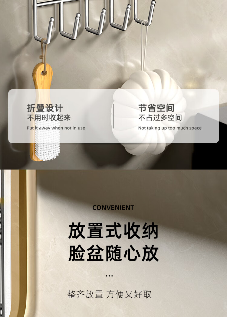 创艺老匠 脸盆架银色 可折叠带5钩单个装(单位:个) 银色