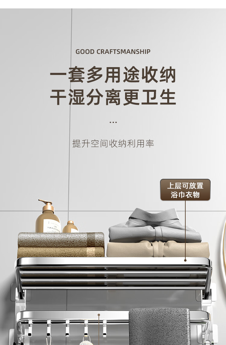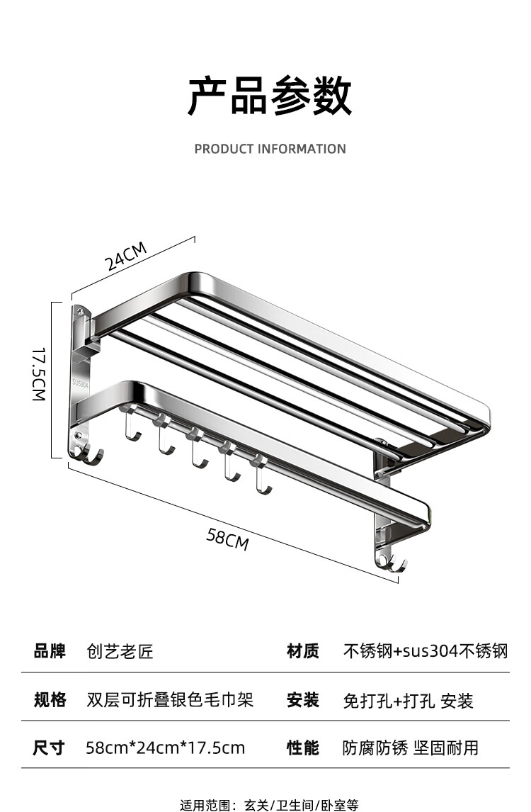 创艺老匠 毛巾架 银色双层5钩款 WY21240402(单位:个)
